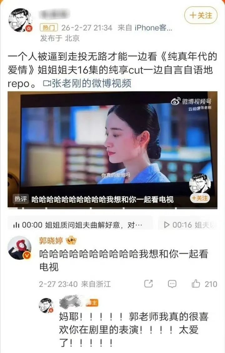 知道为啥郭晓婷上热搜了!女二动不动就亲吻?郭晓婷虽然是千年女二,但是戏份给得也足