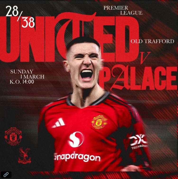直播吧3月1日讯本轮英超曼联将在主场对阵水晶宫,球队官方也晒出海报为本场比赛预热。