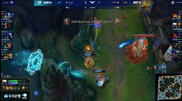 GEN:上单Kiin、打野Canyon、中单Chovy、下路Ruler、辅助Duro