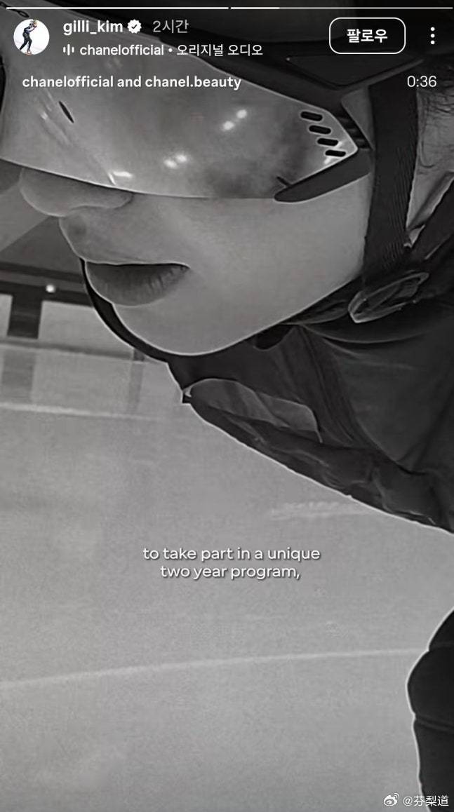 冬奥会短道速滑22岁的金吉莉通过个人社交媒体公开了由香奈儿发布的广告视频。她与多