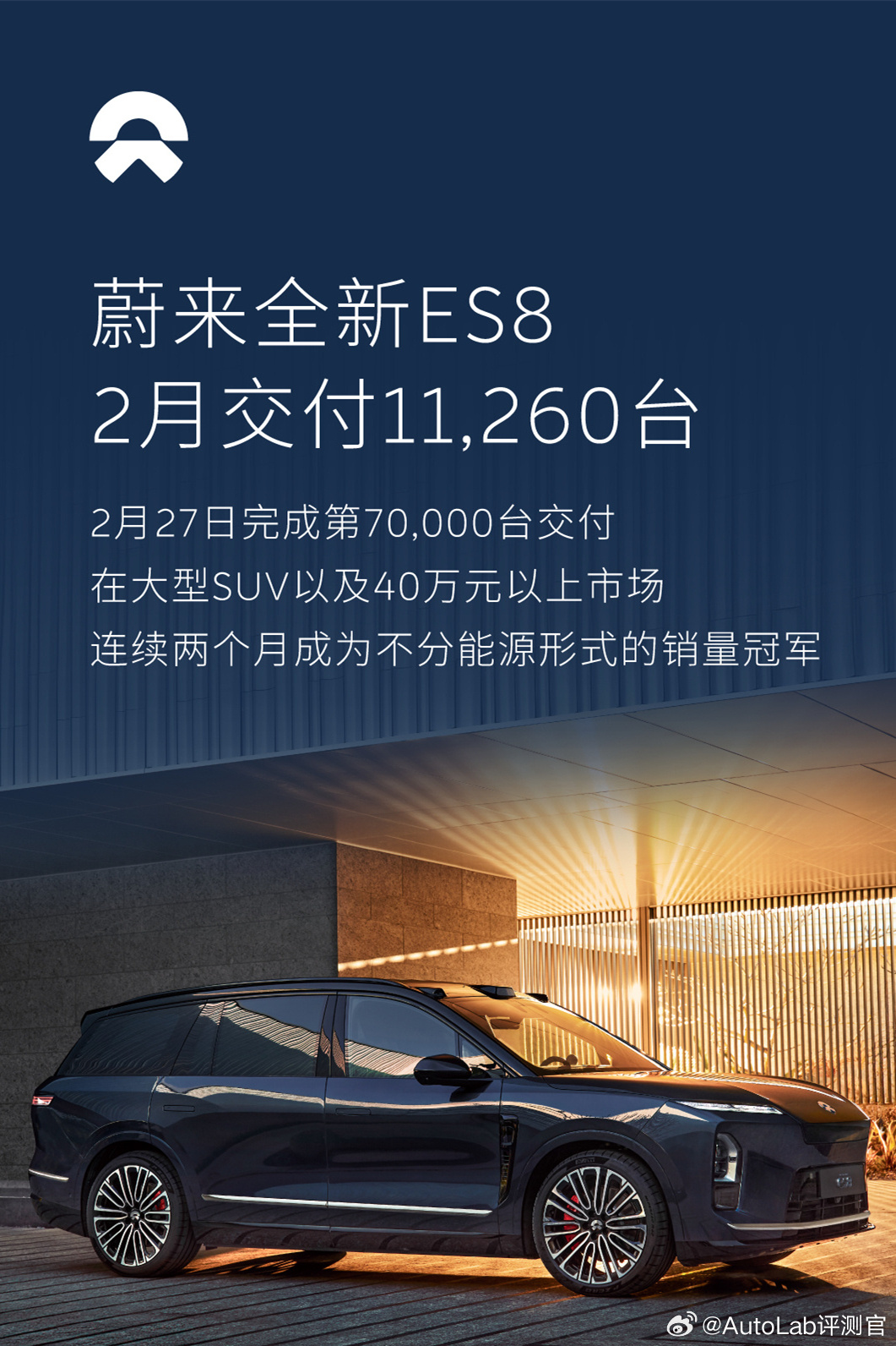 蔚来2月份的交付量也超2万了,其中全新ES8贡献最大。接下来等蔚来ES9上市之后