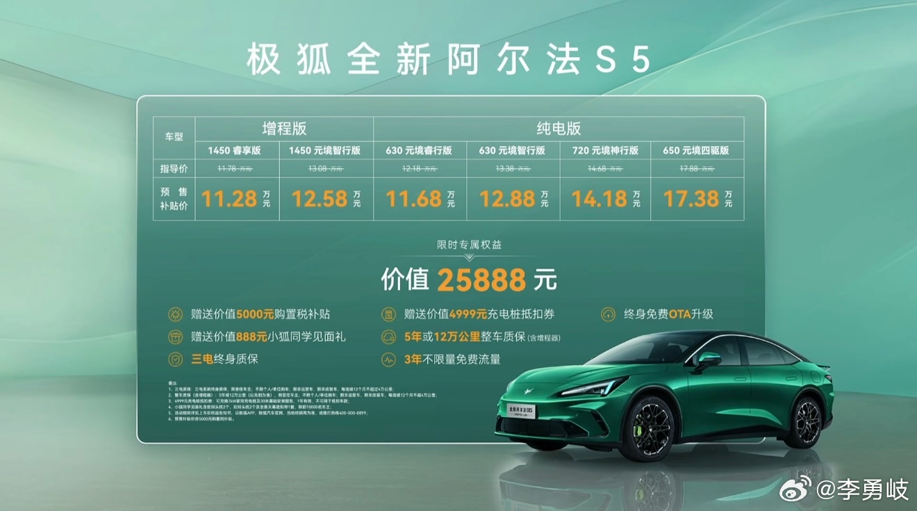 春节开工后不久,一辆顶着一双“蓝色媚眼”的极狐新车出现在大家的视野里,这是极狐全新阿尔法S5。把常规的智驾小蓝灯做出时尚出街的靓丽感,市面上也仅此一家了吧!关注汽车、了解智驾的朋友都好奇,蓝眼狐是L3吗?实际上,蓝眼狐智驾搭载北汽元境满配智驾硬件,8775舱驾一体+惯导双目立体视觉系统,从硬件底子来讲,直奔L3级标准。实际功能上,城区/高速NOA全域领航+全场景智能泊车,可以说,通勤/长途全路况适配,比L2更智能,向L3更贴近。用户开上这辆车,不论是城区通勤还是跨城高速,全域智驾完全就是解放驾驶劳力的新体验,点对点位移轻松惬意,节省体力、驾驶安逸。妥帖周到的全域智驾,连停车都考虑在内,便捷泊车,停挪稳妥。即便是技术不娴熟的“停车新手”,也能摆脱“停车恐惧症”。近水楼台先得月,高阶智驾技术积淀下放,将L3级研发中的核心技术普惠到民用市售车型,准L3智驾体验全民可享。不论是通勤的舟车劳顿,还是拥堵频繁启停的劳心费神,蓝眼狐智驾都能代劳,提前让车主感受准L3智驾落地的用车日常。极狐全新阿尔法S5全系标配宁德时代电池,纯电版续航最长770km,增程版CLTC综合续航1450km,宁德神行5C超闪充和全域800V高压平台,补能体验高效无感。动力上双电机四驱3.7s零百加速与麦格纳底盘调校,又快又稳。从质变升级的智驾,到设计、空间、智舱、动力的全维提升,蓝眼狐全新阿尔法S5是AI时代的新物种,相当值得入手!