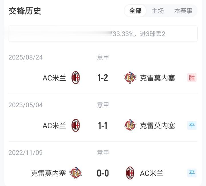 目前意甲积分榜上,米兰15胜9平2负积54分,位列第2;克雷莫内塞5胜9平12负积24分,位列第17。双方赛季首次交锋中,米兰主场1-2爆冷不敌克雷莫内塞。