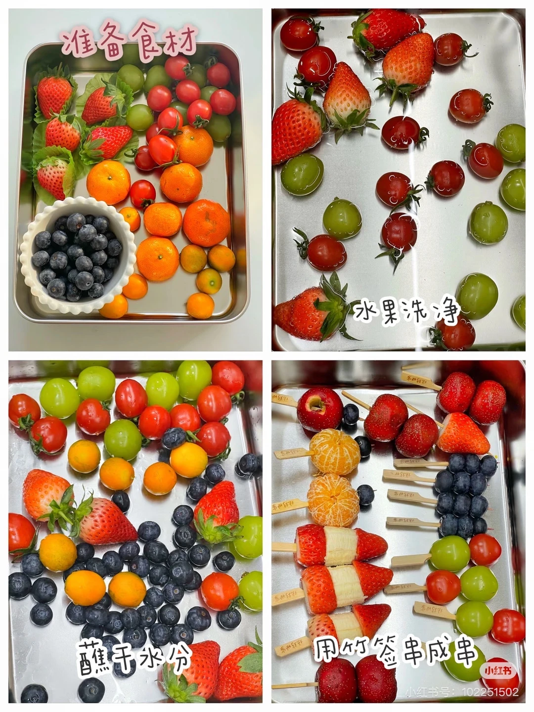 🔹水果洗净,需要剥皮的薄片,去核的去核,用厨房纸蘸干水分。