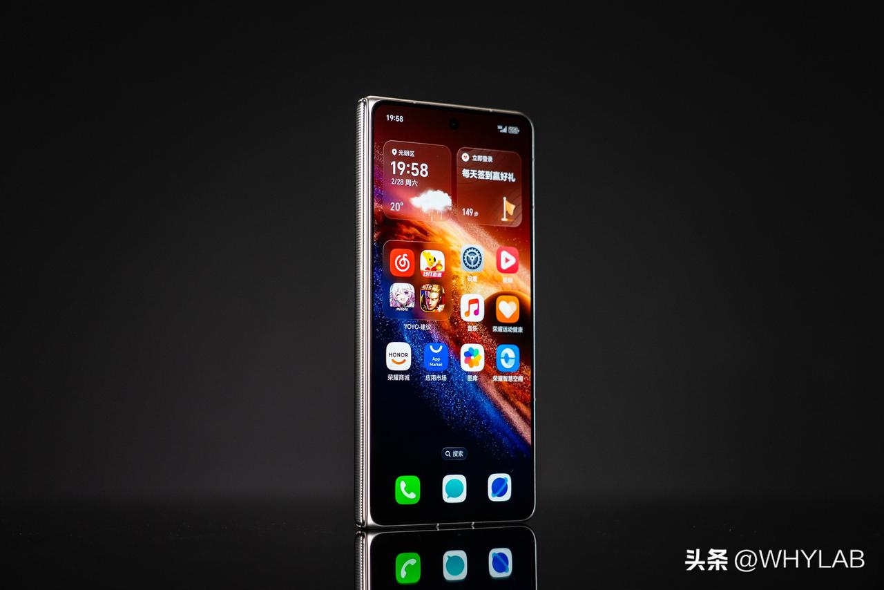 荣耀 Magic V6 这次共有四款颜色:赤兔红、旭日金、雪域白、绒黑色 4 款颜色。赤兔红为本次主打色,绒马环保皮,独占精雕轴盖纹理。这次内屏升级了 UTG 超薄玻璃,折痕相比上一代改善 44%,得到了 SGS 无感知折痕认证。 此外,白色采用玻纤后盖,是此次 SKU 中最轻薄的版本,展开厚4mm,折叠厚 8.75mm,重 219g;其余配色展开厚4.1mm,折叠厚 9mm,重 224g。厚度重量减轻的同时电池容量、硅含量进一步得到提升,明早公布续航实测成绩,小伙伴们可以多多留意。[灵光一闪]