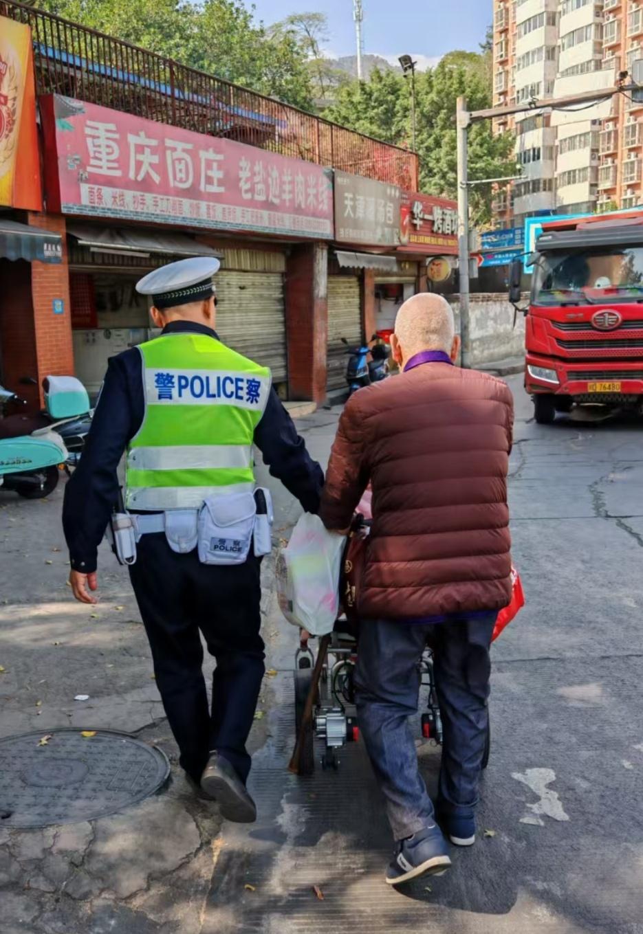 近日,交警四大队执勤民警在路面执勤时,发现一名坐轮椅的群众过马路困难,执勤警员立即上前,小心护送其安全通过路口,用实际行动守护群众出行平安。