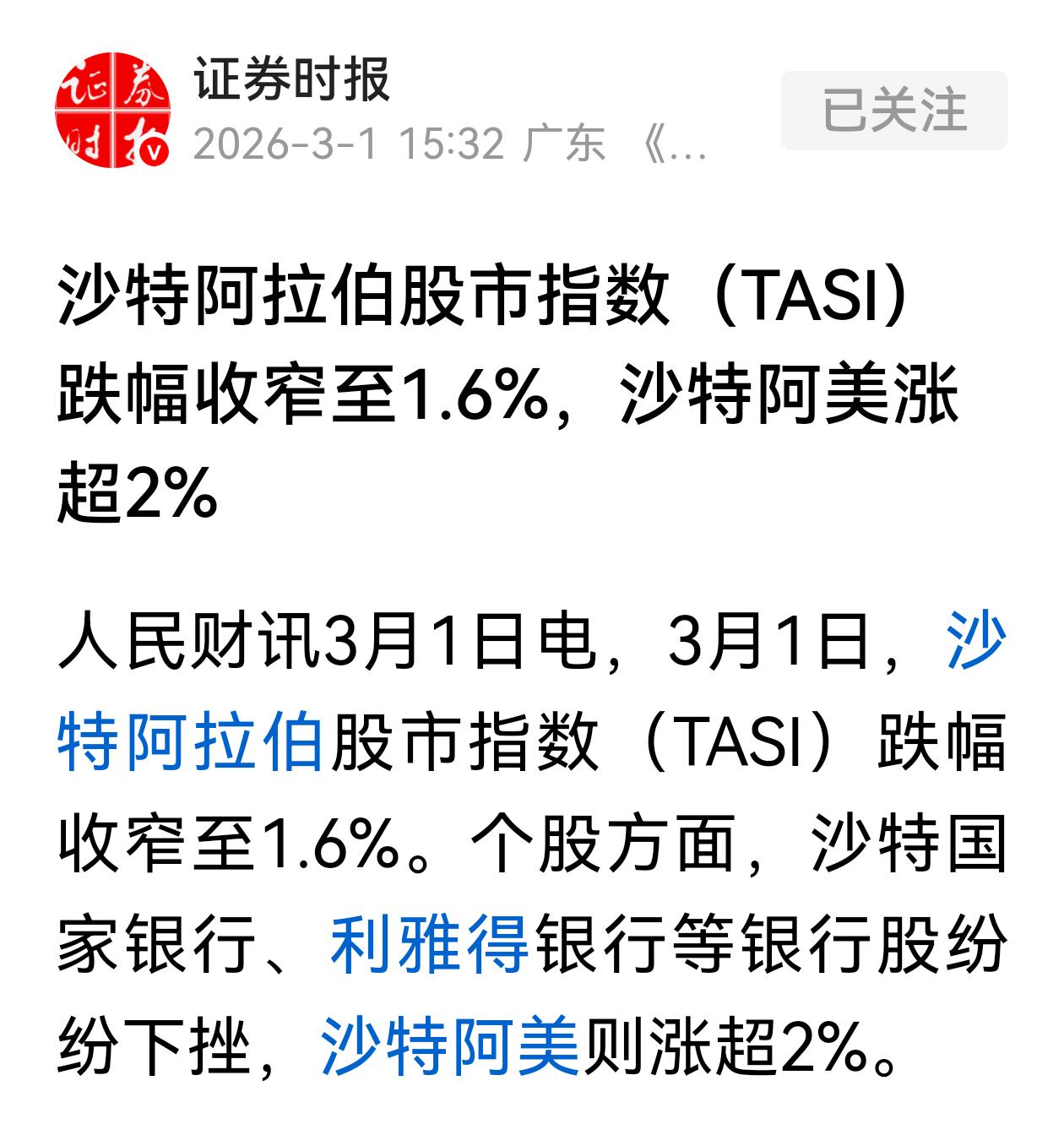 美以对伊打击之后,沙特股市率先进入交易时段,市场开盘大跌,一度大跌5%,随后收窄