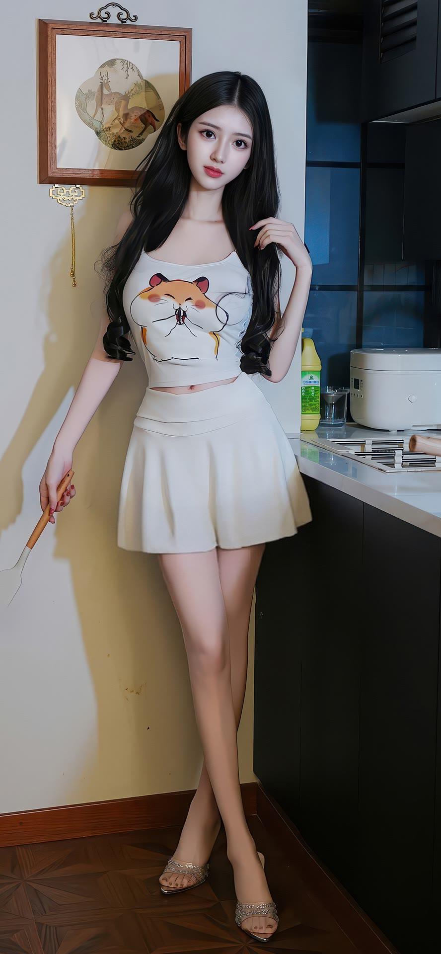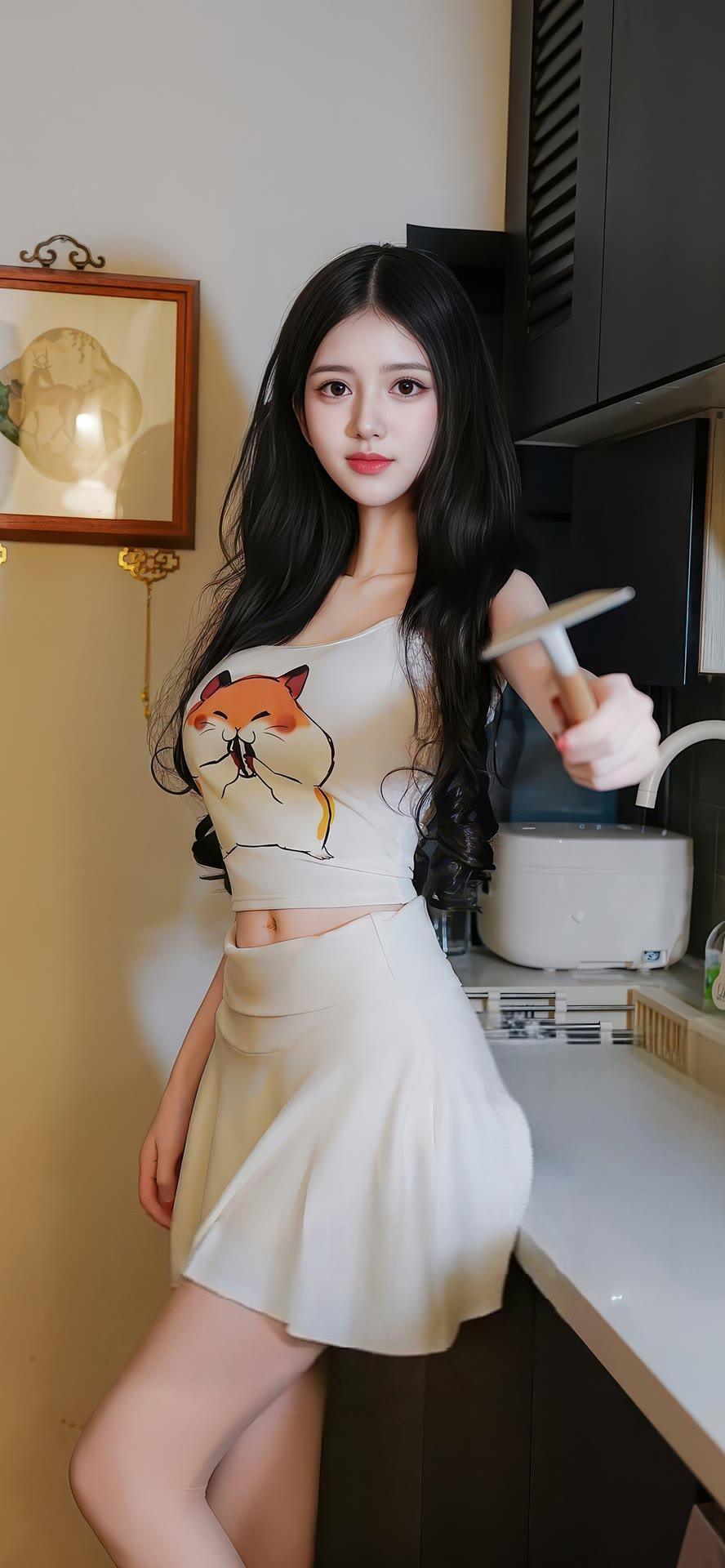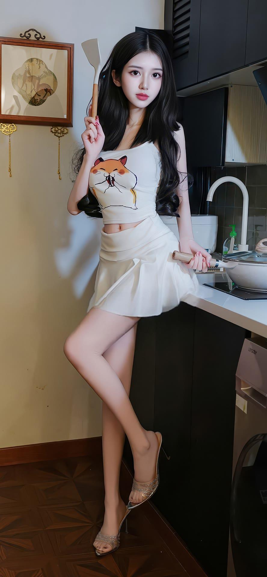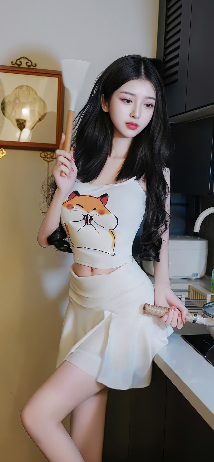 甜美少女在厨房,可爱装扮,萌化你的心!🍳💖