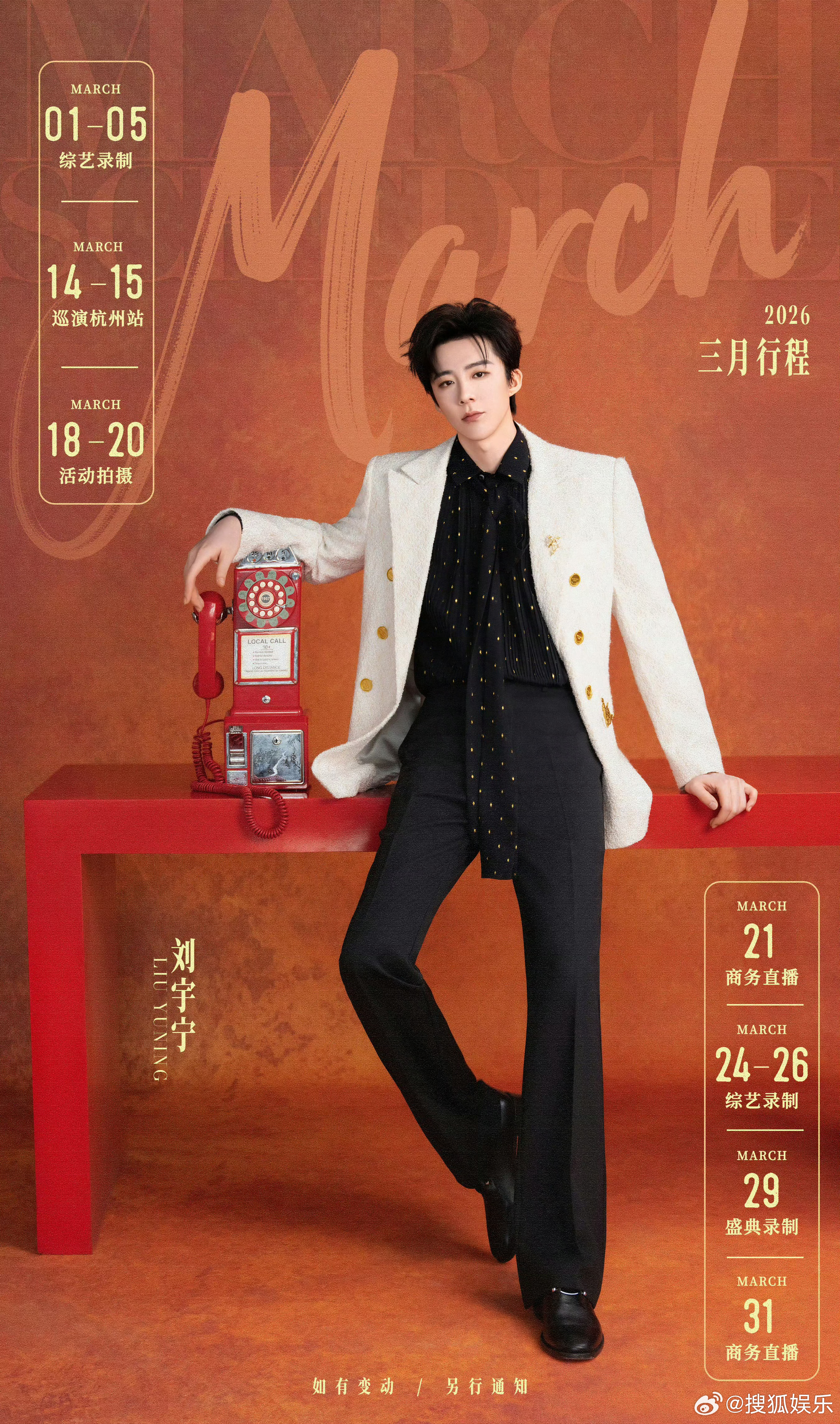 又一波艺人三月行程图送上,你期待与谁线下多多见面?迪丽热巴 刘宇宁 檀健次 刘宇