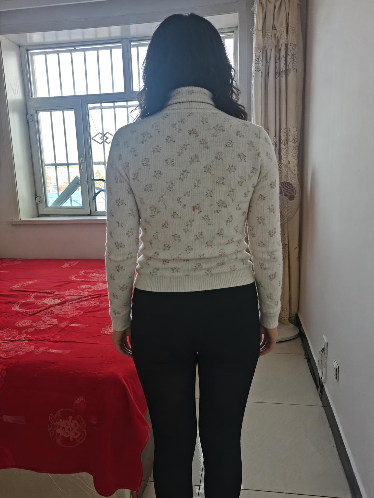 碎花毛衣衬素腰,红榻窗前影自摇。 不语凝眸向天外,春风已在路迢迢。