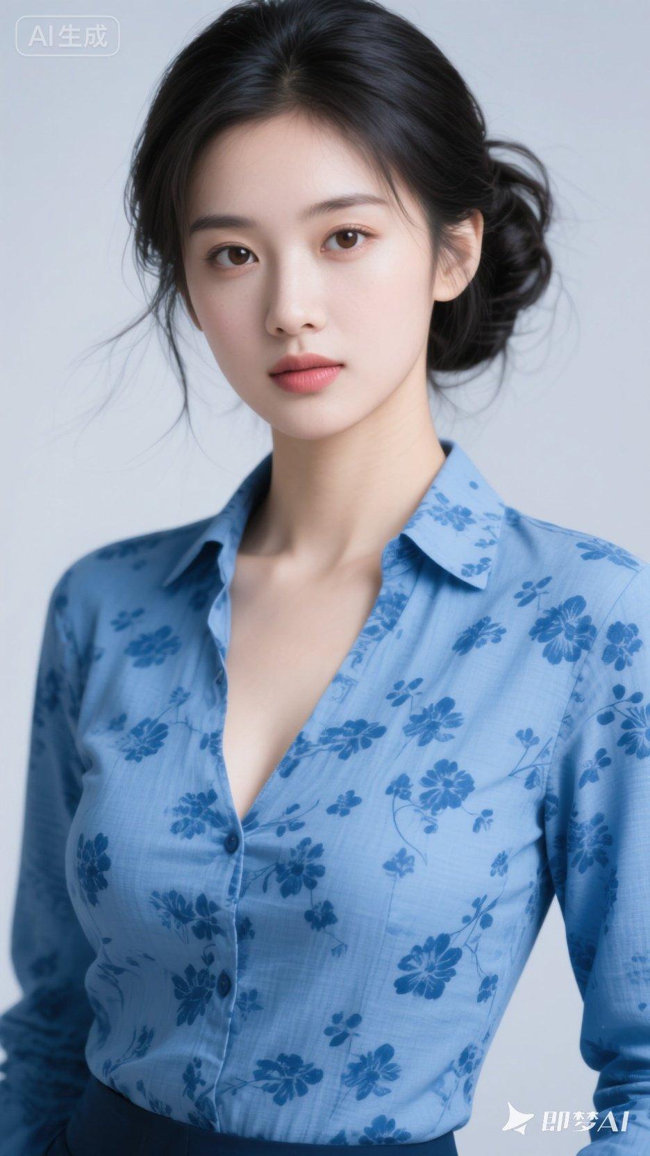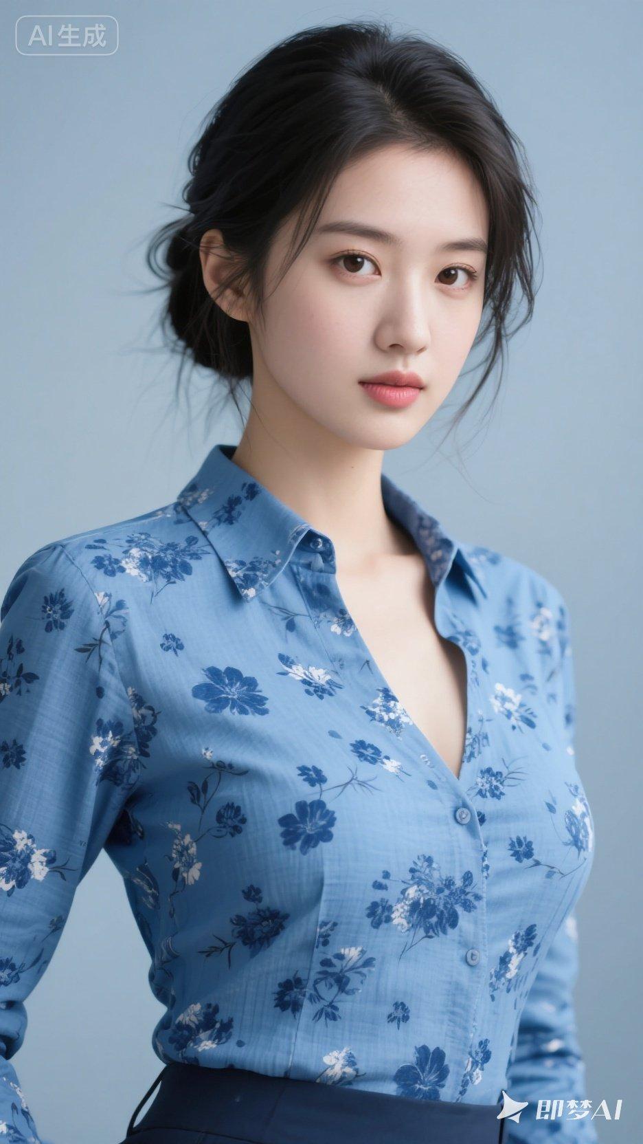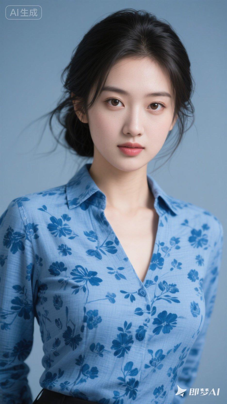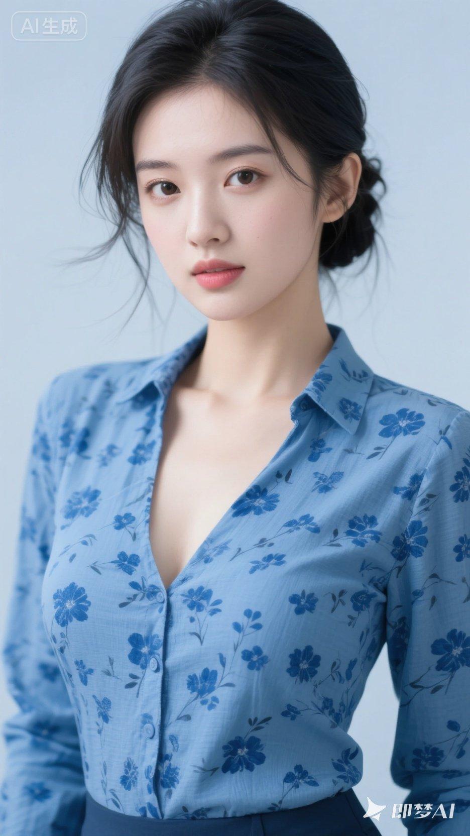 清新蓝花衬衫,优雅气质满满!🌸💙