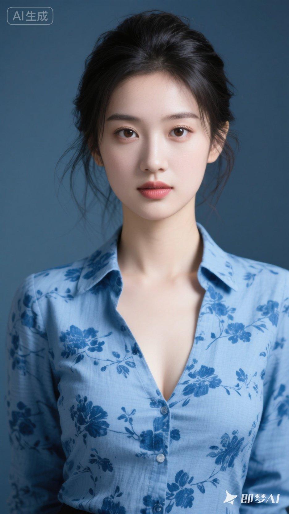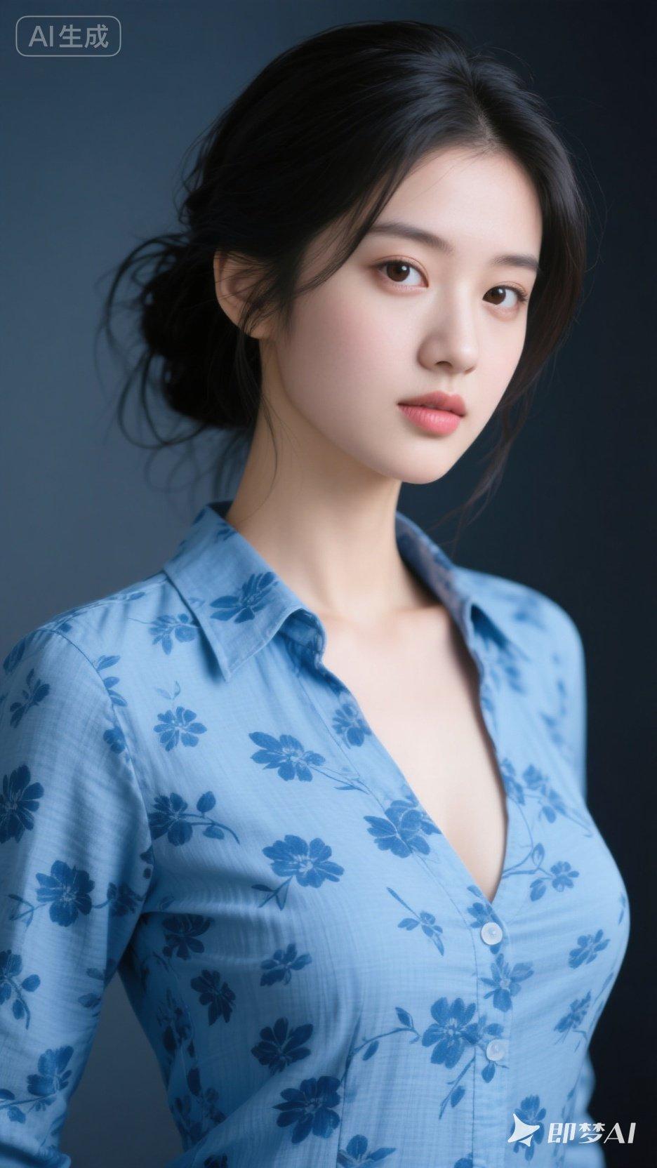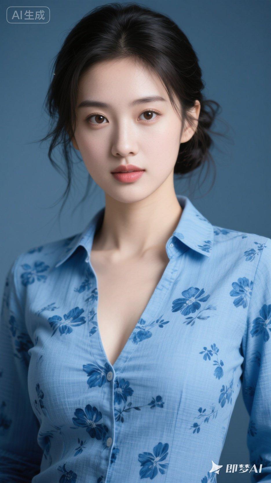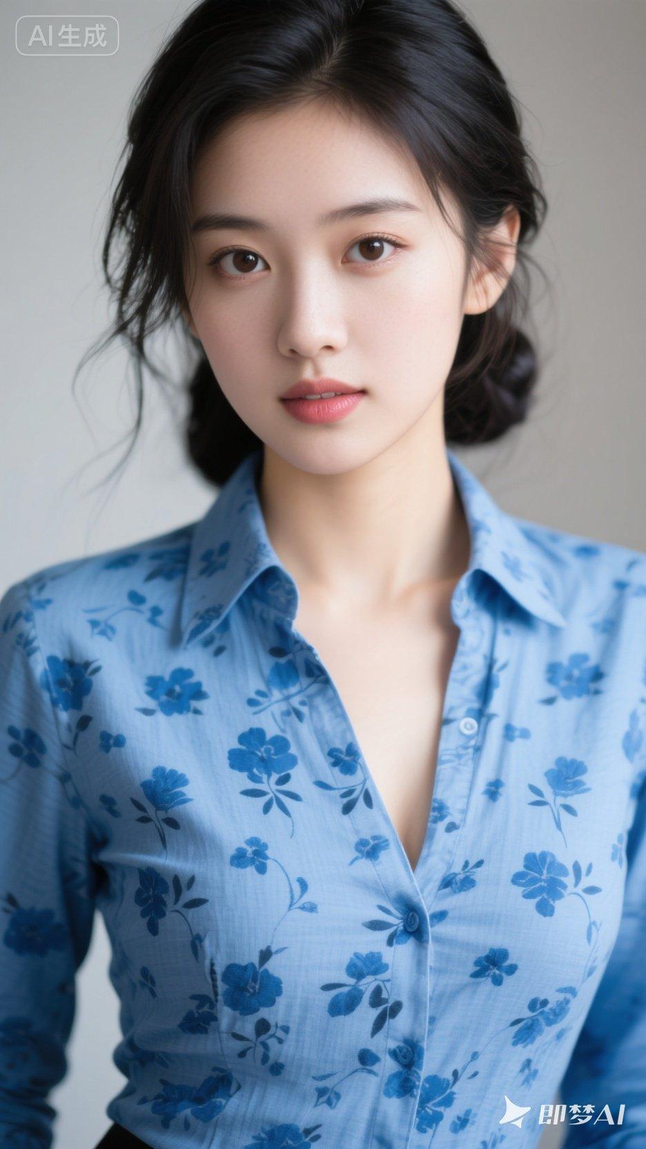 清新蓝花衬衫,优雅气质满满!🌸💙