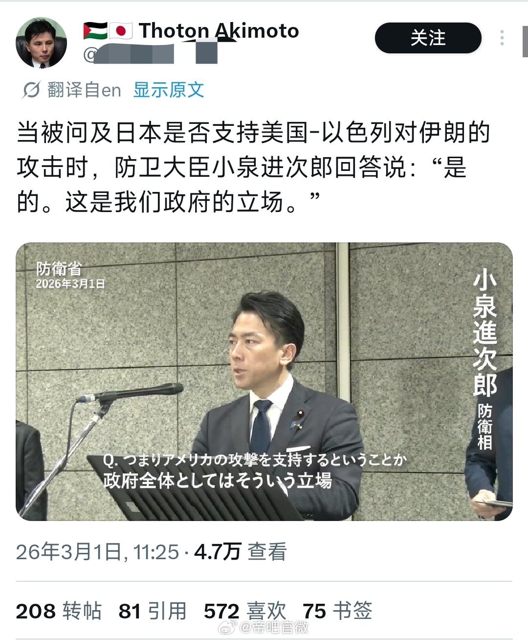 高市早苗:中东有事,就是日本有事。小泉进次郎的:支持美国攻击伊朗是日本政府的整体立场。日本人开始担心高市与美国大统领会面的时候说了不该说的话,导致日本成为中东公敌。⭐总之日本人已经开始不安了,美伊开战,霍尔木兹海峡被封锁日本能源大动脉惨遭切断,坐等油价起飞,拉闸断电日元恐变废纸伊朗袭击27个美军基地