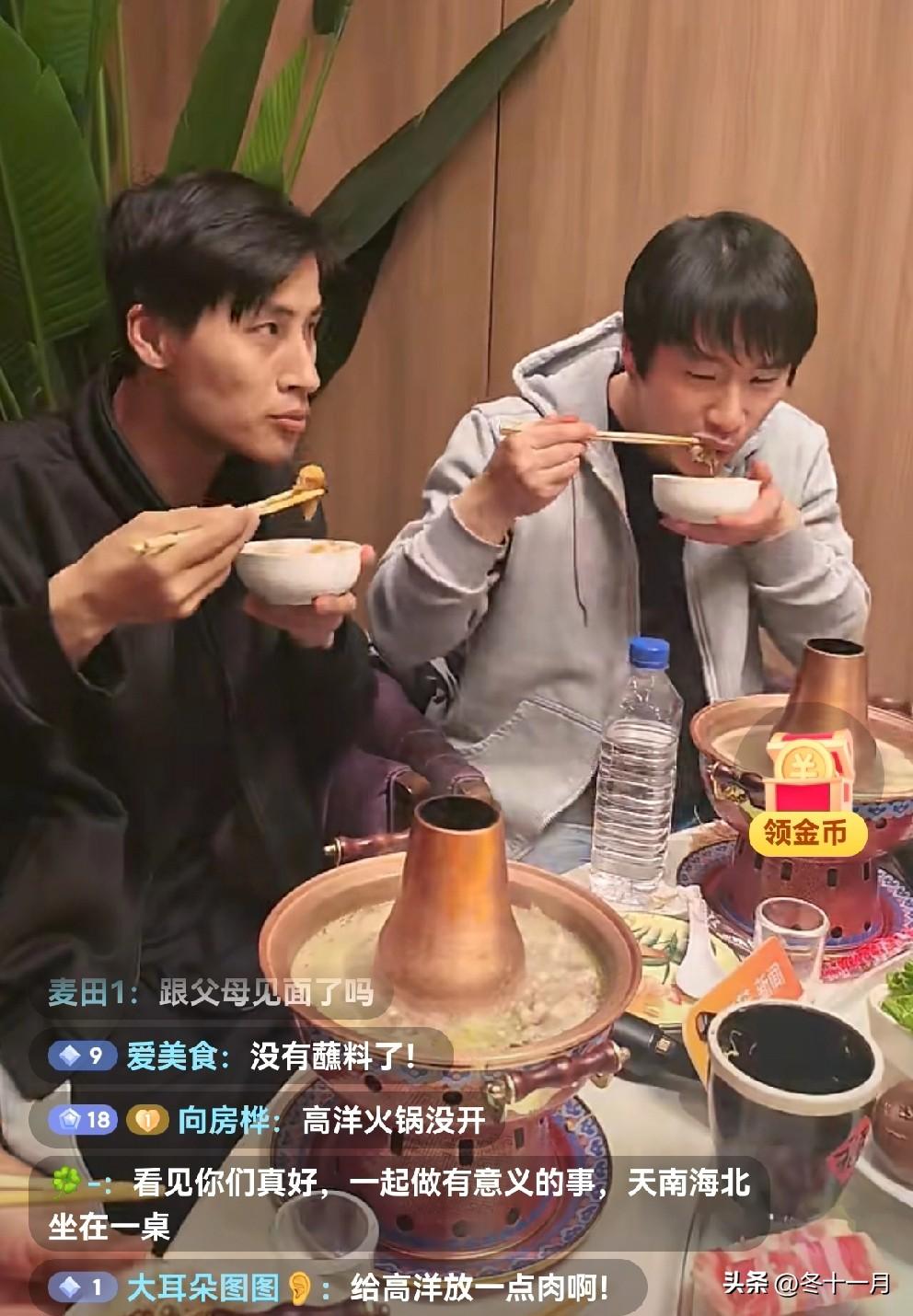 从加拿大回国认亲的张云鹏,寸步不离地跟着高洋,他很认生。 这趟回国寻亲之旅,高洋全程陪同。 高洋是宝贝回家的海外志愿者,他也是一名曾经的寻亲人。 他是一名语言学博士,这次张云鹏的回国寻亲,也是他帮助促成的。 宝贝回家的创始人张宝艳大姐,在火车站亲自迎接张云鹏和高洋。 晚间,张宝艳大姐设宴招待了张云鹏,高洋和一众媒体朋友。 东北的火锅冻梨成了这两位海外游子的最爱。 最搞笑的是,上来了一盘红糖糍粑,张云鹏夹了一块咬了一口,之后又去沾了火锅调料来吃,而且露出了很满足的表情,真的是没有吃过呀!