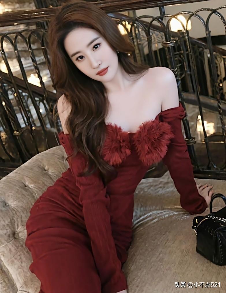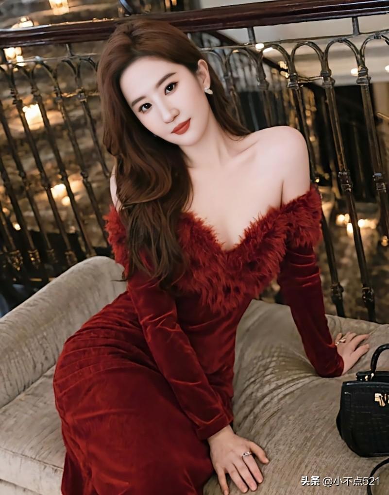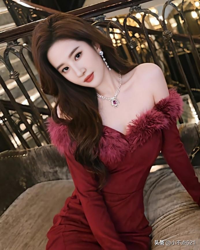刘亦菲这造型也太美了![比心]红色抹胸裙,棕色长发和珍珠耳坠在灯光下闪得我移不开