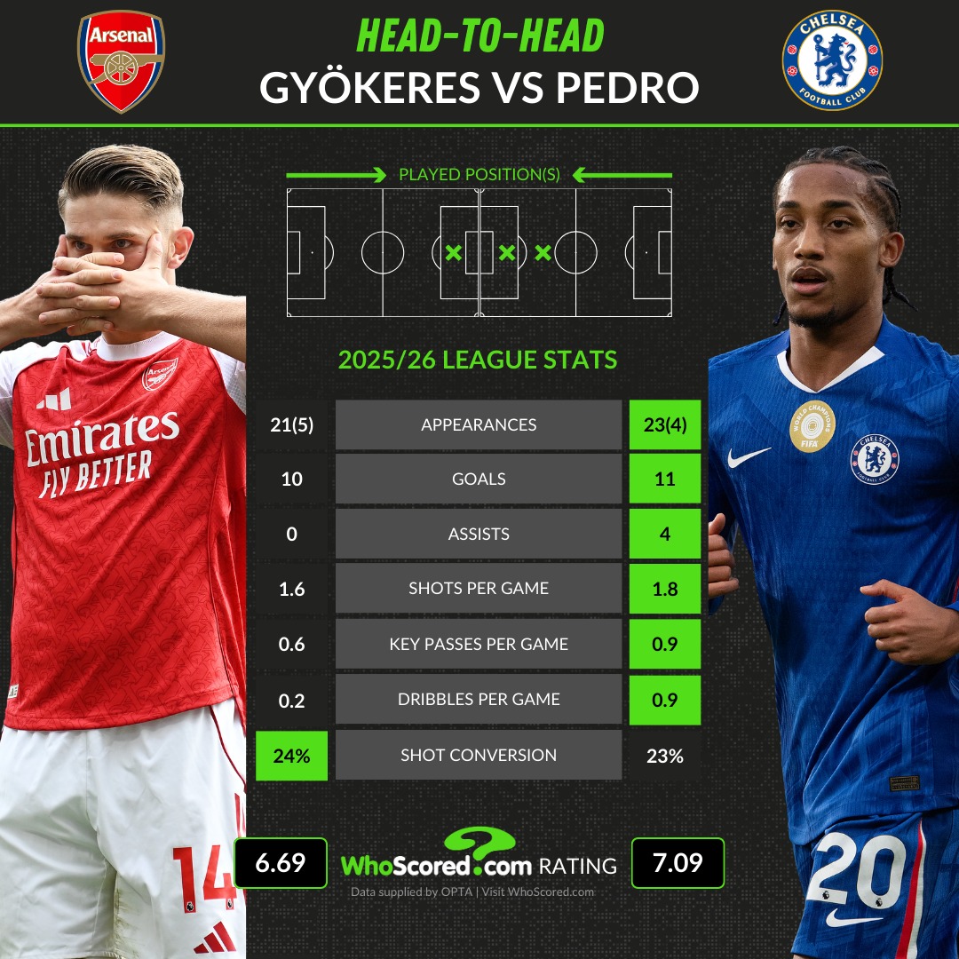 虎扑03月01日讯本轮英超,阿森纳主场对阵切尔西。赛前whoscored对比哲凯赖什与佩德罗本赛季英超数据对比(哲凯赖什在前):