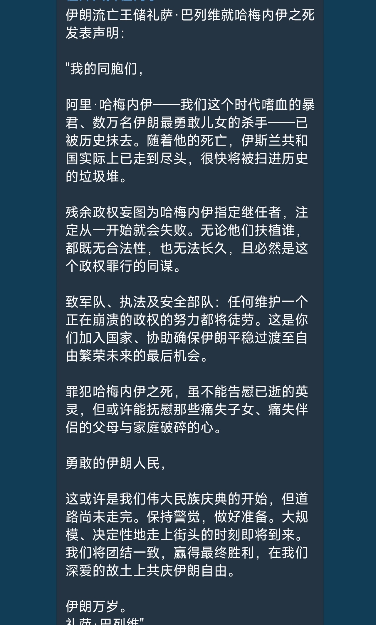 哈梅内伊的临终遗言!这或许是哈梅内伊人生的最终章,他的官推这样写道:奉至