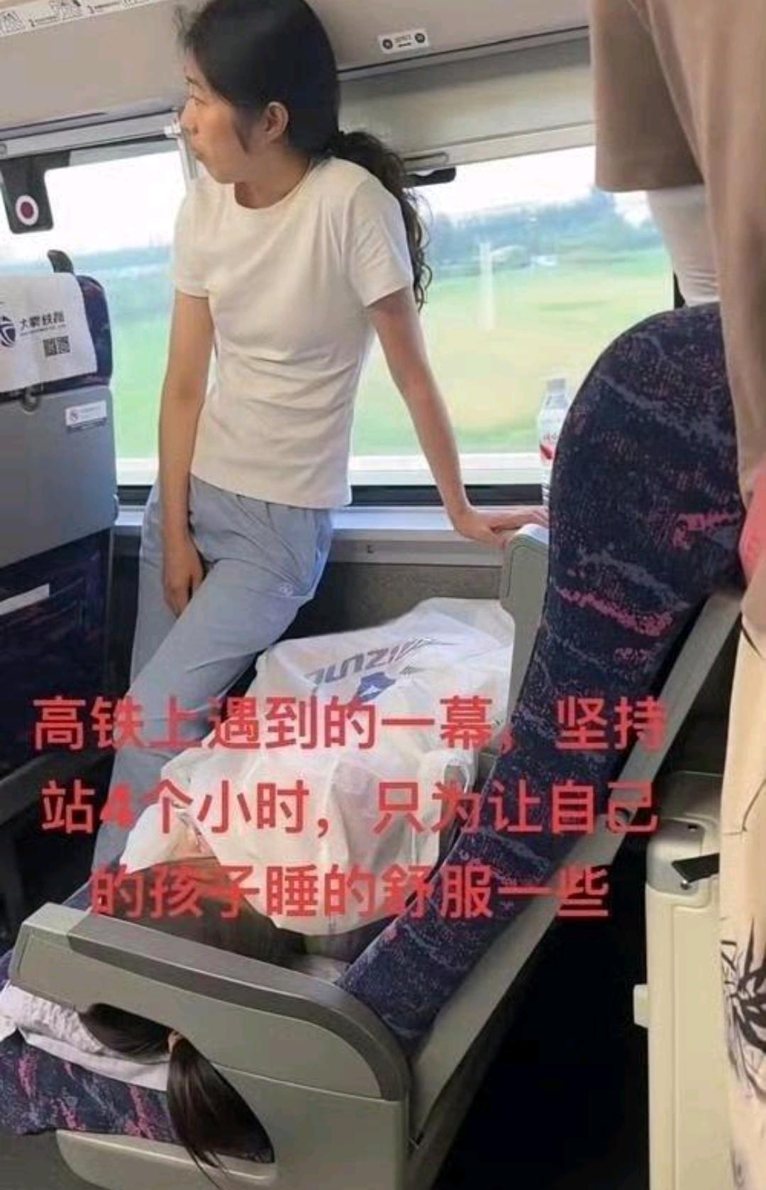 高铁上的一幕,看完,我惊呆了,高铁这刷屏的一幕,只有当妈的才懂有多戳心 刷到高铁这两张图, 我鼻子一下子就酸了, 眼泪控制不住往下掉。 全网都在骂, 说她摆拍博眼球, 说她占座没规矩。 可我一个当妈的, 一眼就看懂了, 她眼里藏不住的心疼。 不就是让孩子躺平了睡个安稳觉吗? 不就是自己缩在旁边, 舍不得占孩子那点地方吗? 这有什么好骂的? 哪个当妈的, 没干过这种“傻事”? 我去年带我家娃坐高铁, 娃前一天晚上发烧闹了一宿, 一上车就困得睁不开眼。 我抱着他坐了半小时, 胳膊麻得跟不是自己的似的, 腰也僵得直不起来。 可看着他睡得那么香, 我愣是一动不敢动, 就怕晃醒了他。 全程3个小时, 我一口水没喝, 一次厕所没去。 旁边的阿姨说我太惯着孩子, 可只有我自己知道, 他不舒服的时候, 我恨不得替他受所有的罪。 有人站着说话不腰疼, 说不会多买一张票吗? 装什么伟大? 可不是所有妈妈, 都能随手多买一张票的。 很多妈妈带娃出门, 恨不能一分钱掰成两半花。 钱要给孩子买奶粉买尿不湿, 要留着给孩子看病上学, 自己苦点累点,真的不算什么。 还有人揪着说她摆拍, 就算是摆拍, 她拍的也是千千万万妈妈的日常啊。 我闺蜜带娃回娘家, 12个小时的绿皮火车, 她全程抱着娃站着。 就因为娃认床, 只有抱着才能睡踏实, 她就硬生生站了一宿, 腿肿得跟馒头似的。 她也没拍视频博眼球, 也没喊过一句伟大, 可这就是当妈之后, 刻在骨子里的本能啊。 当妈之前, 我们也是拧不开瓶盖的小姑娘, 也是怕累怕疼的小公主。 可当妈之后, 我们就成了孩子的天, 只要孩子能舒服一点, 别说蹲4个小时, 就算站全程,我们都心甘情愿。 真的,别再杠了。 你可以不理解, 但请别随意诋毁一个妈妈的爱。 天底下哪有什么完美的妈妈, 不过都是一群普通的女人, 拼了命想给孩子最好的而已。 最后想问一句, 有没有同款当妈的? 带娃出门的时候, 是不是宁愿自己受委屈, 也不想孩子遭一点罪? 评论区说说你的经历, 咱们当妈的,互相抱一抱。