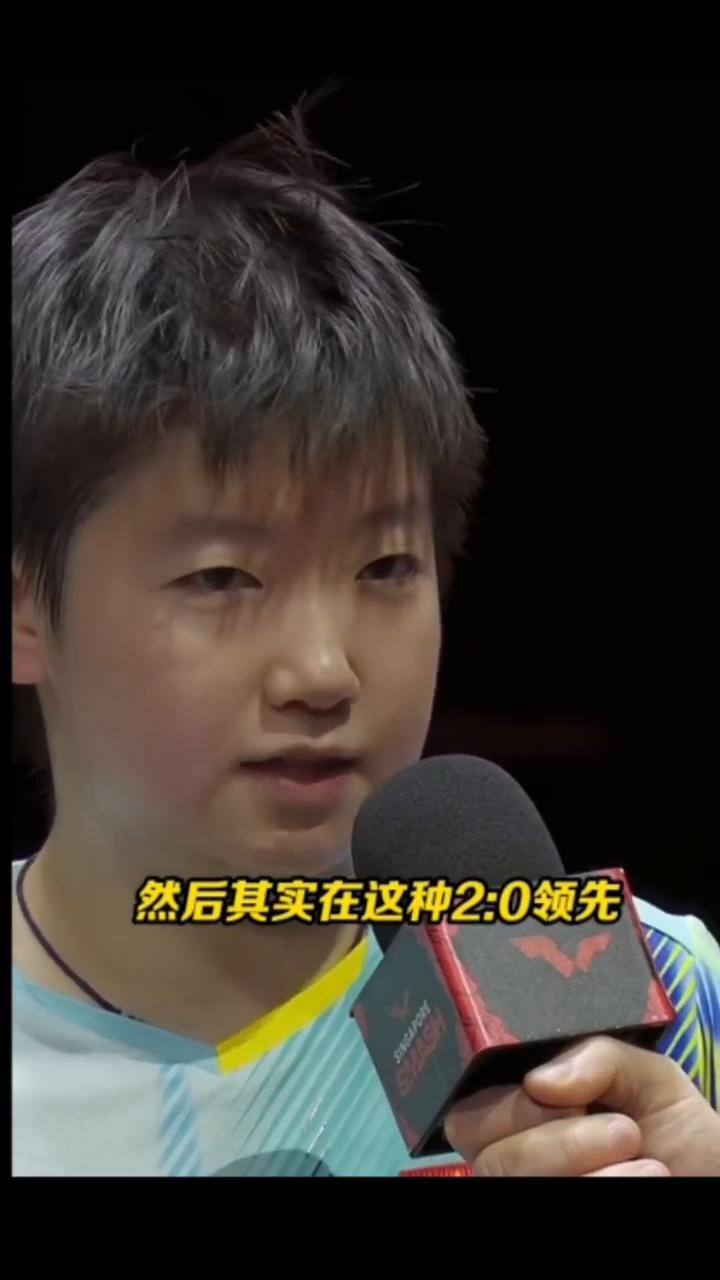 孙颖莎:和曼昱都拼尽全力,珍惜打好每一分。 首先我觉得还是非常开心能够再次在新加