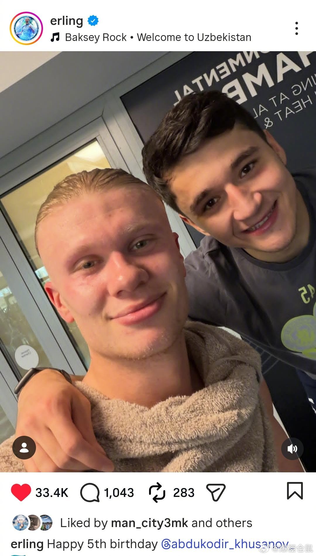 【曼城前锋哈兰德祝队友胡桑诺夫5岁生日快乐】胡桑诺夫是在2004年2月29日出生