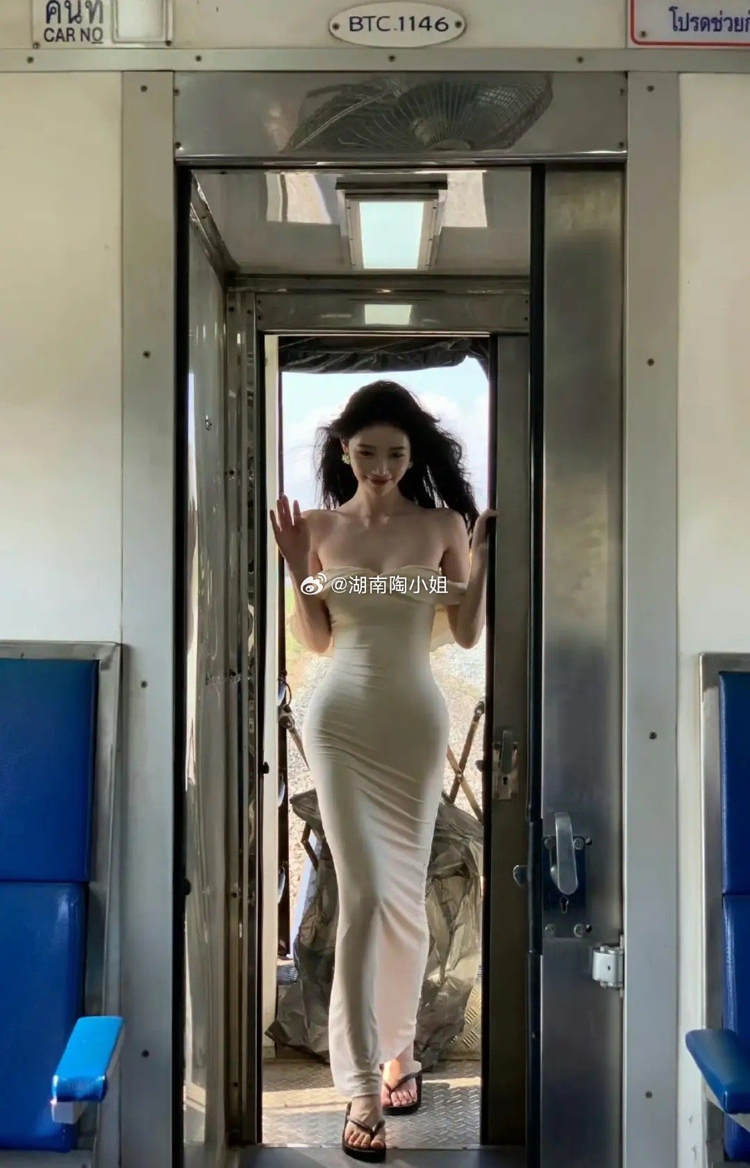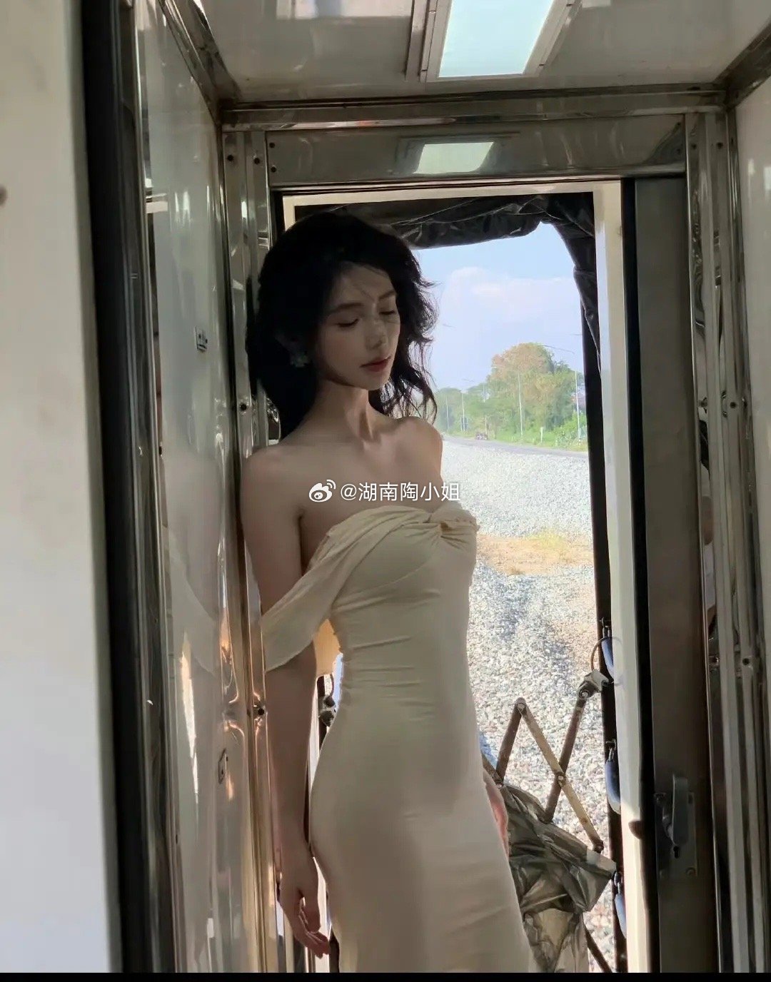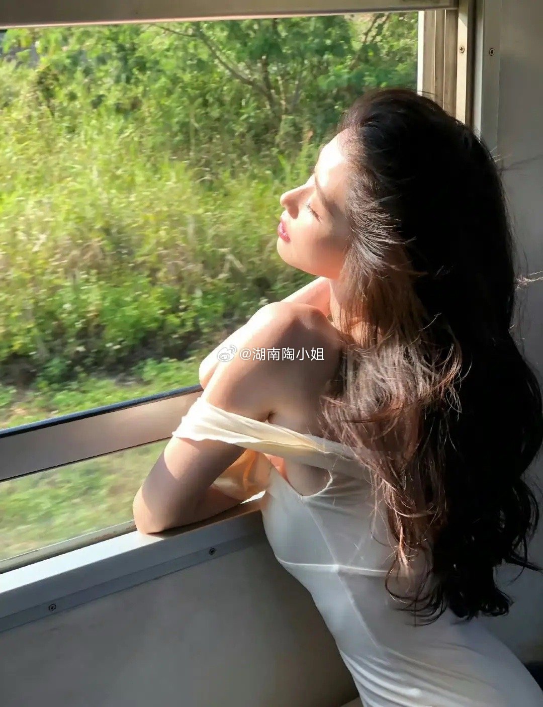 女艺人方媛分享自拍照片。风轻轻吹起长发,姐姐站在车门边挥手的样子,又灵动又撩人。重点是这个身材真的太逆天了。