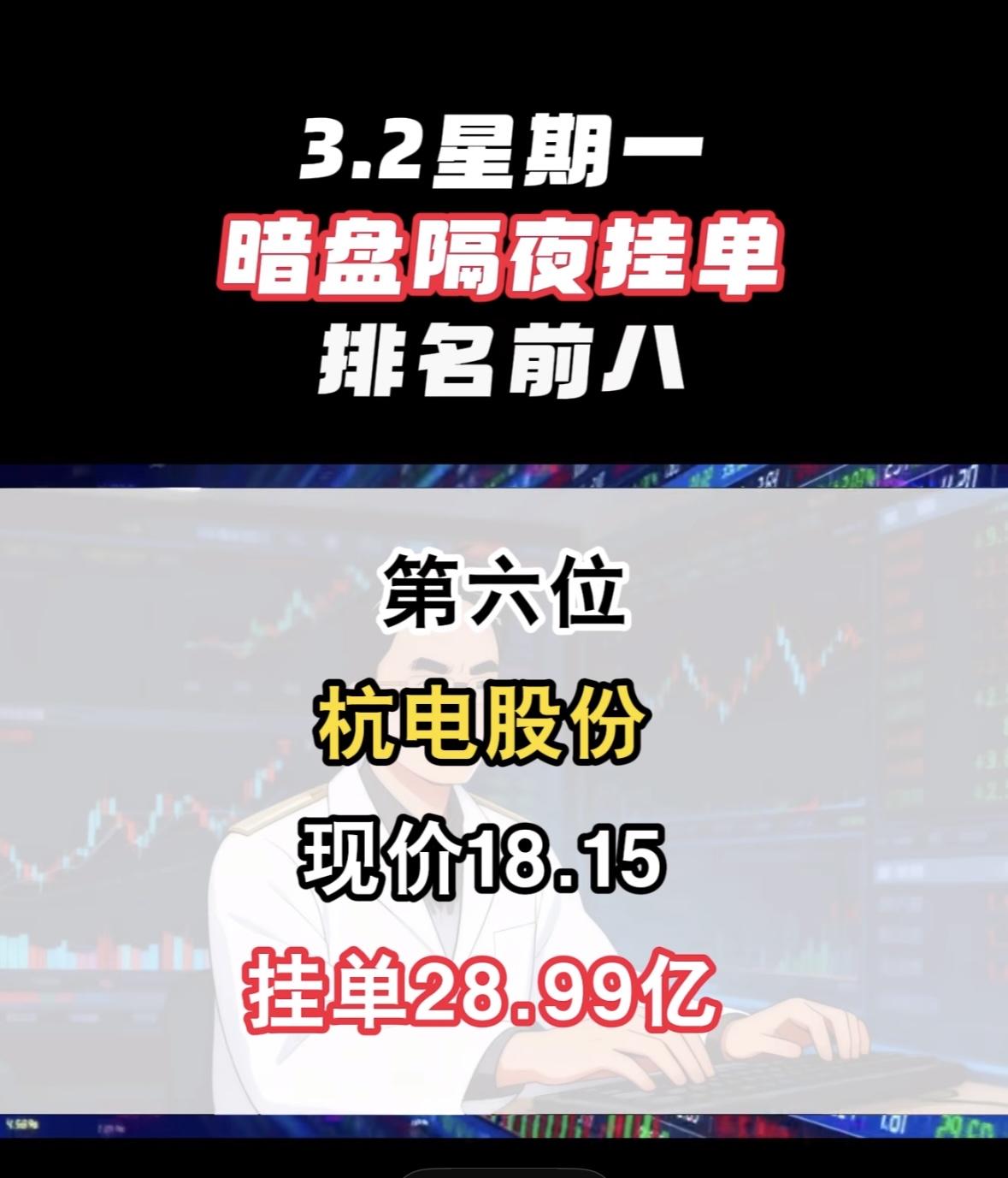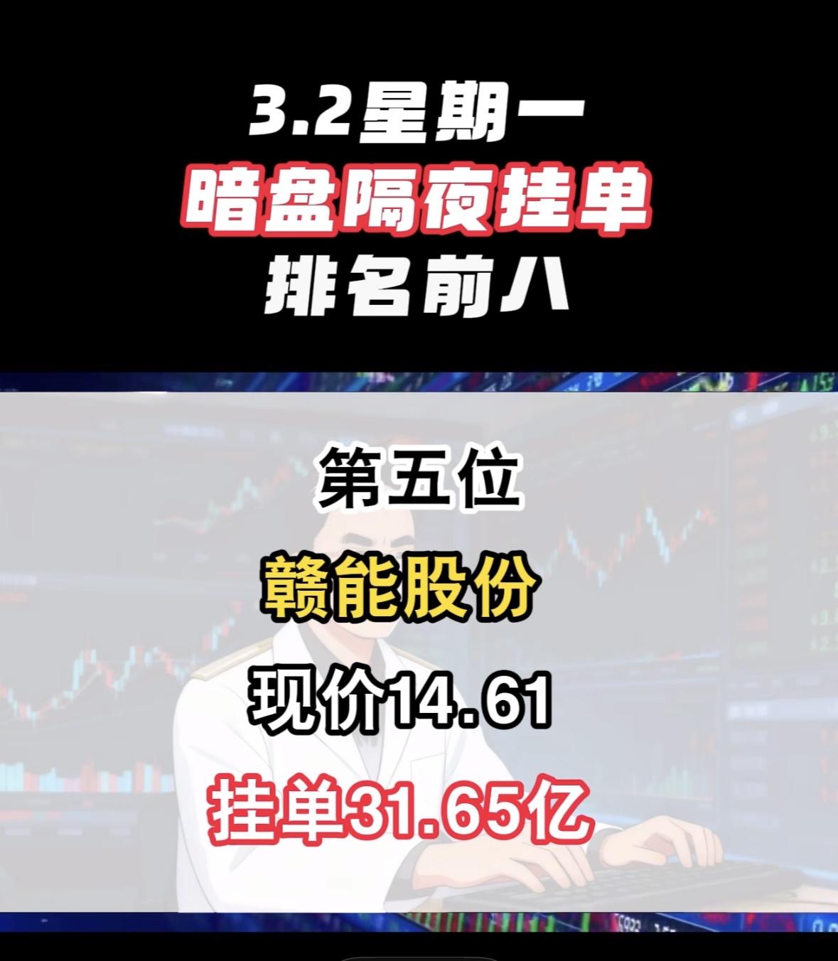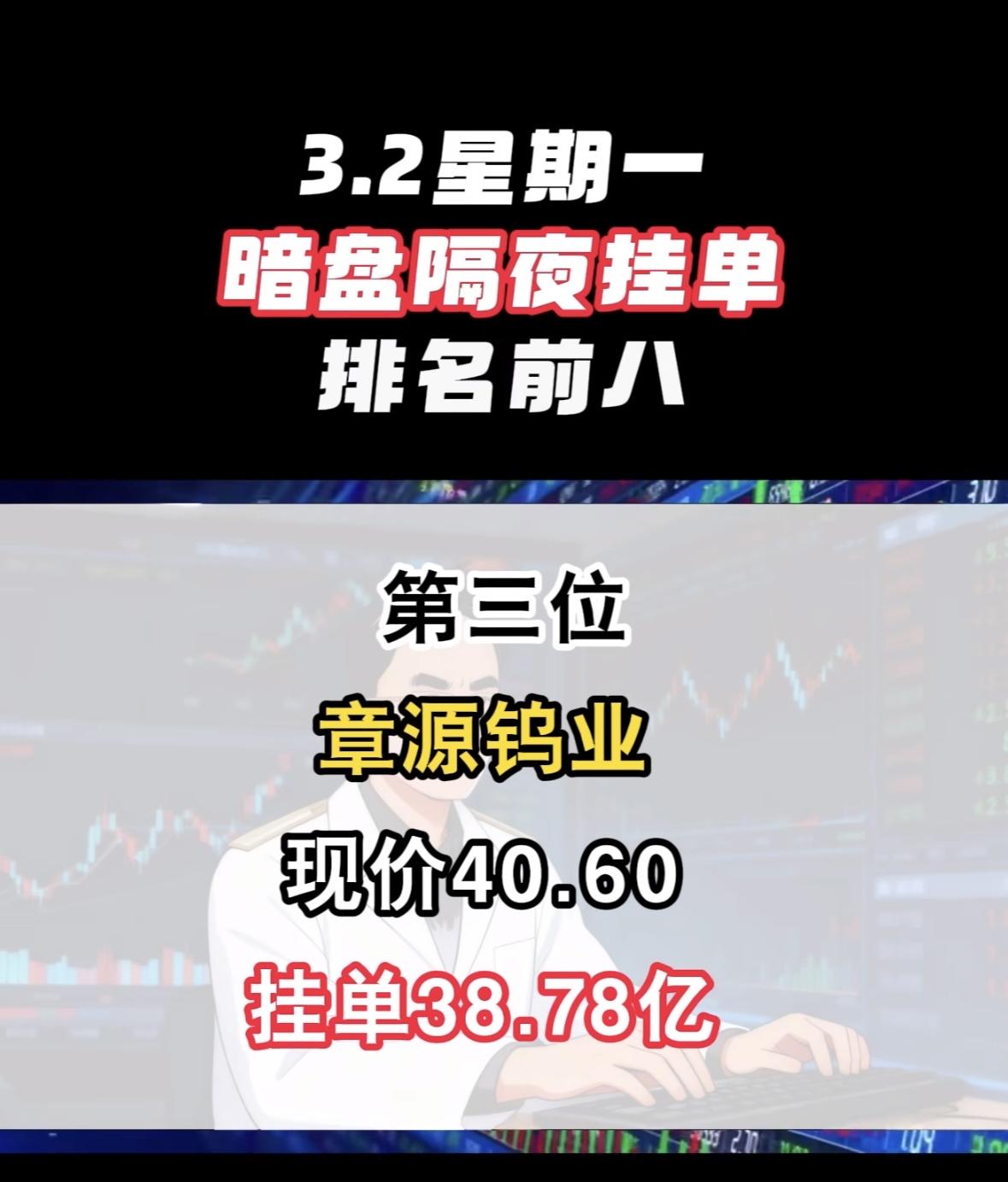 3月2日暗盘隔夜挂单前八,包钢股份现价3.24,挂单12.4e,投资需谨慎!