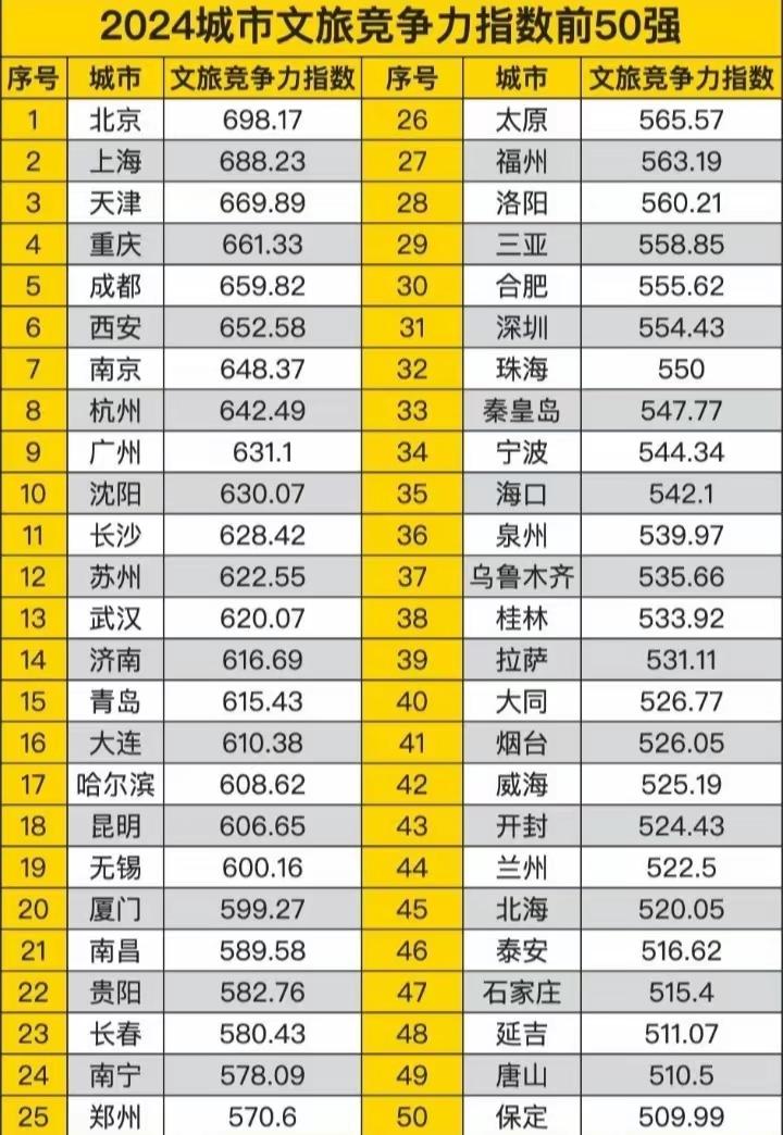旅游 城市 老徐心里不服气,觉得全国城市文旅竞争力排名有点乱来。南京力压杭州,沈阳超过苏州,江苏仅有3个城市上榜,无锡排在第19位。作为新崛起的网红城市,竟然连文旅竞争力50强城市都进不去?唐山、保定有什么可圈可点之处?泰安有泰山,桂林有山水,洛阳有龙门石窟,老徐承认自己比不过这些城市,也就心服口服了。 江苏 南京 苏州 唐山 保定 泰安 桂林