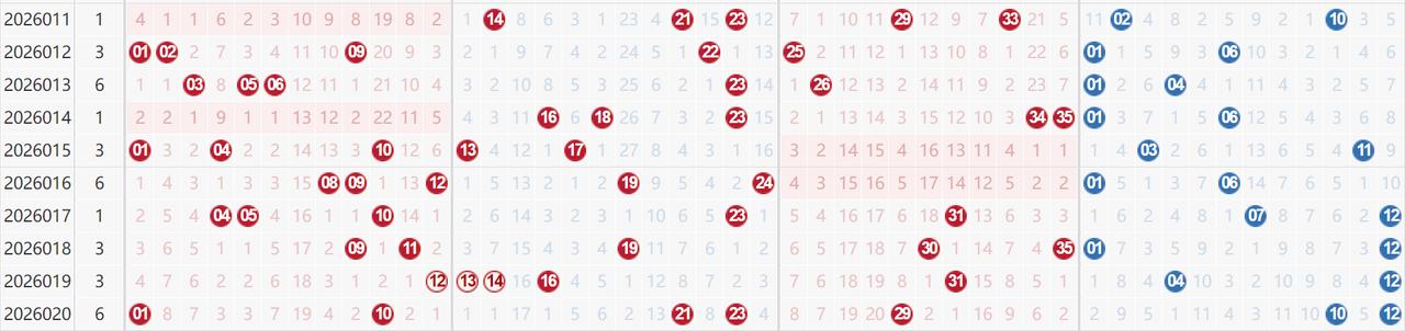 大乐透分析难度不断加大:前区热号区域几乎都中断,12-16热区没能延续出号,10虽位置接近但也不算太接近,5个前区号重号斜连号全都没出,想靠热区选热号定胆几乎行不通;后区12相反则是4期大热重号,但也把人架在火上烤,还敢不敢博5期重号实在考验胆量,估计追的人还是占多数,但历史5期重号又实在是太少太少啦!不知道大家会作何选择呢?