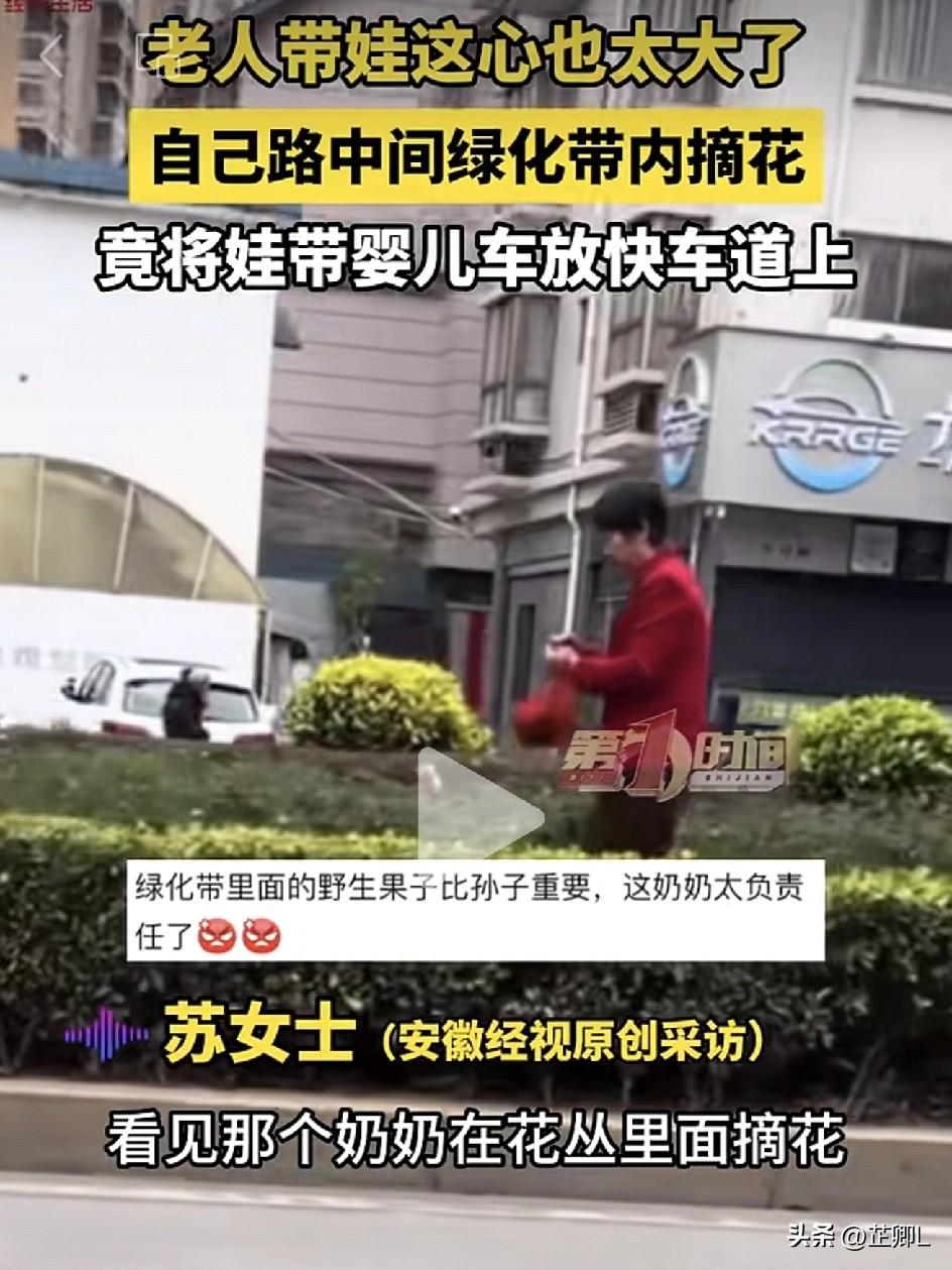 吓出一身冷汗!莆田老人把宝宝和婴儿车放在快车道,自己竟钻进绿化带专心摘花?! 我的天!这操作未免也太心大了吧!快车道?车水马龙?婴儿车?这、这、这……怎么想都是风马牛不相及啊! 2月27日,福建莆田,司机苏女士路过时,直接看懵了:大马路快车道上,居然孤零零停着一辆婴儿车,里面还坐着个咿咿呀呀的宝宝?!!! 而不知道是孩子的奶奶还是外婆,居然自己钻进了路中间的绿化带里,低头专心摘花,完全把娃抛在脑后! 婴儿车旁,来往的车辆呼啸而过,光是看着都替孩子捏了一把冷汗,心跳的突突的,生怕出点什么意外。 苏女士吓得赶紧掉转车头想去提醒,还好等她折回时,老人终于往婴儿车方向走了,真是万幸中的万幸!让人忍不住想念一声:阿弥陀佛[祈祷][祈祷][祈祷] 咱就说,带孩子出门哪能这么粗心啊!马路可不是咱自己家的院子,想咋站就咋站,想停哪儿就停哪儿。 车来车往的多危险,孩子的安全一秒都不能离眼,可千万别因一时大意酿下大错啊! 马路上的一个小失误,带来的可能就是终生的遗憾! 素材来源:AHTV第一时间,侵联删!