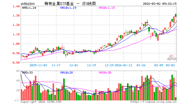 3月2日,稀有金属ETF基金(561800)开盘涨1.94%,报1.312元。稀有金属ETF基金(561800)重仓股方面,洛阳钼业开盘涨1.71%,北方稀土涨1.86%,华友钴业跌0.01%,盐湖股份涨1.05%,赣锋锂业跌0.51%,天齐锂业跌1.08%,中矿资源跌0.02%,厦门钨业涨5.49%,中国稀土跌0.46%,西部超导跌1.45%。