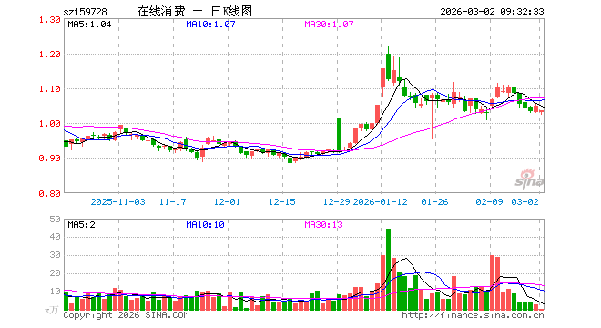 3月2日,在线消费ETF南方(159728)开盘跌1.81%,报1.031元。在线消费ETF南方(159728)重仓股方面,科大讯飞开盘跌1.90%,歌尔股份跌2.13%,巨人网络跌3.32%,蓝色光标跌4.86%,恺英网络跌1.72%,昆仑万维跌1.62%,拓维信息跌0.08%,三七互娱跌1.92%,安克创新跌1.64%,光线传媒跌2.72%。