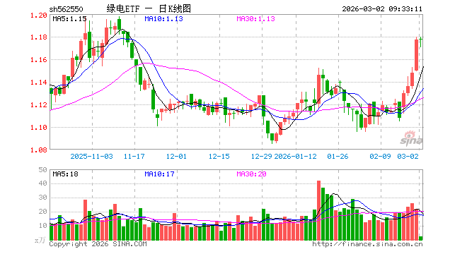 3月2日,绿电ETF(562550)开盘涨0.08%,报1.178元。绿电ETF(562550)重仓股方面,长江电力开盘涨0.31%,中国核电涨0.00%,三峡能源跌0.24%,国电电力跌0.20%,华能国际跌0.41%,国投电力跌0.38%,上海电力跌1.56%,川投能源涨0.07%,浙能电力跌0.56%,华电国际跌0.78%。