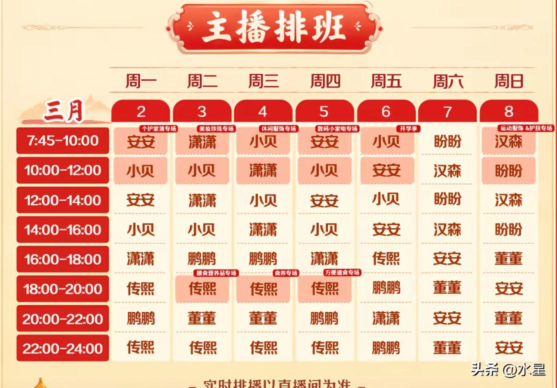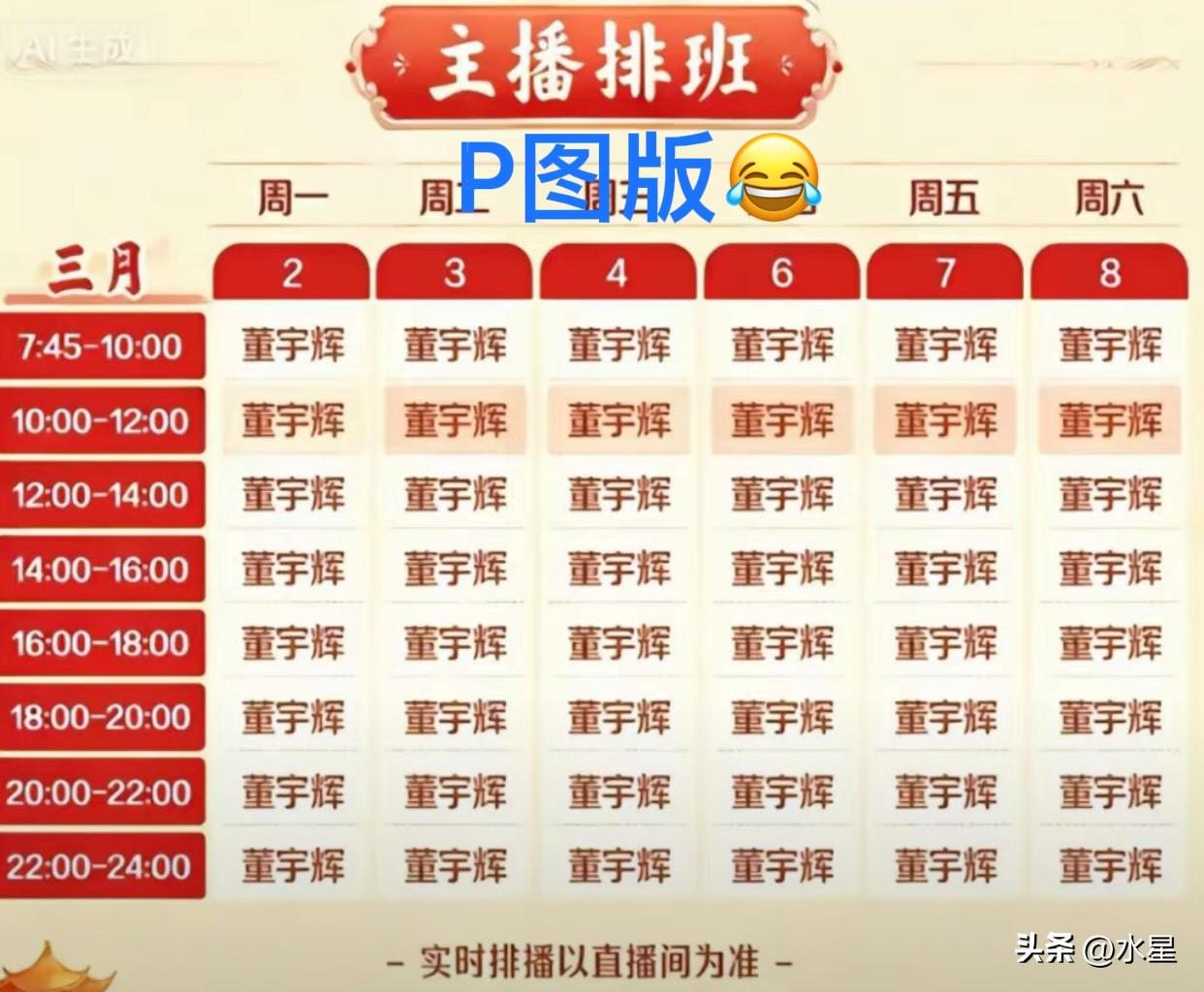 董宇辉又是一周不上播 这在以前是很罕见的 这在以后或许会是常态 以前不论再忙 董宇辉一周也会上播一次 跟大家见见面 却很少有连续两周都不上播的情况 评论区里有人调侃说宇辉离职了[偷笑] 有人P 了一个自己喜欢的排班表[笑哭] 也有人说这是实现“全员辉化”了 当然大部分人觉得宇辉是去干大事了 到时候会给大家一个大惊喜 我倒觉得这以后可能是个常态了 宇辉会变得越来越低调 工作重心不再是直播带货 而是投入到更多有意义的事上 比如阅山河,破万卷,游知万物 比如战略合作、慈善公益等 现在与辉同行的业绩越来越稳定 小王子也开始腾出精力 一步步靠近自己喜欢的事 还是那句话,他不会忘记初心的 而他喜欢的也是211同学们喜欢的 不论做什么决定 大家都会一如既往的支持[耶]
