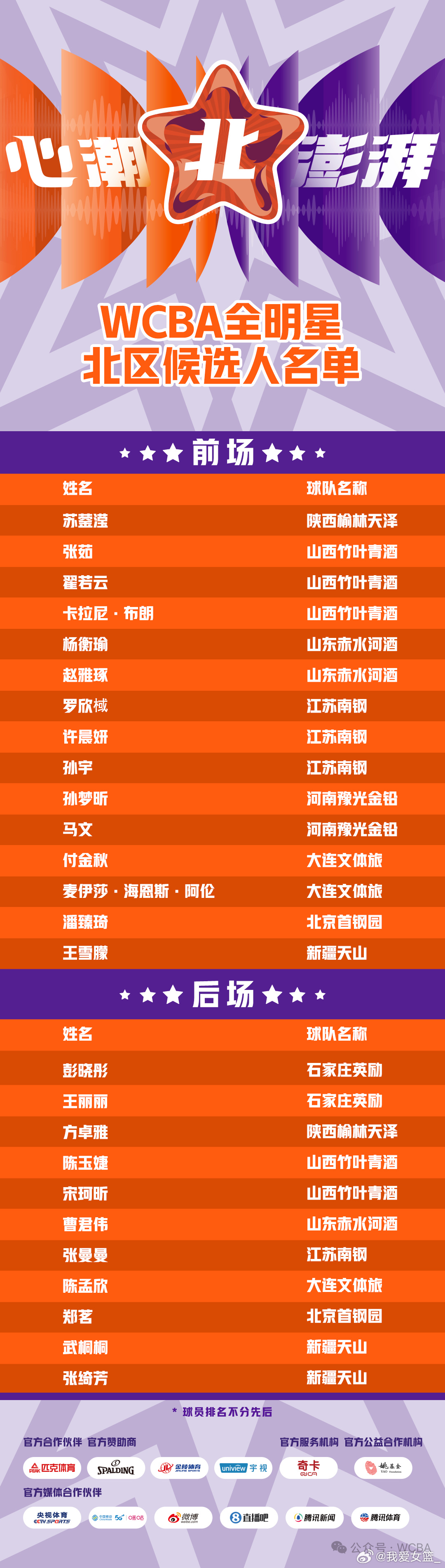 【WCBA全明星票选开启,韩旭、张茹位列候选名单】官宣全明星投票将于今天(3月2日)12:00开启。具体规则如下: 投票时间:2026年3月2日-3月12日,其中3月7、8、9日为三倍计票日,3月10日进行中期票选结果公布。 投票规则:每个IP地址每天可参与1次投票,分别从南北区候选名单中挑选5名球员(前场3名,后场2名)。 投票平台:直播吧、咪咕视频、微博、腾讯体育、中国篮球APP及小程序。 值得注意的是,本赛季常规赛未出战的张茹和韩旭也在候选球员名单中,韩旭更是在昨天刚刚结束澳洲联赛WNBL的征程。探营WCBA球队