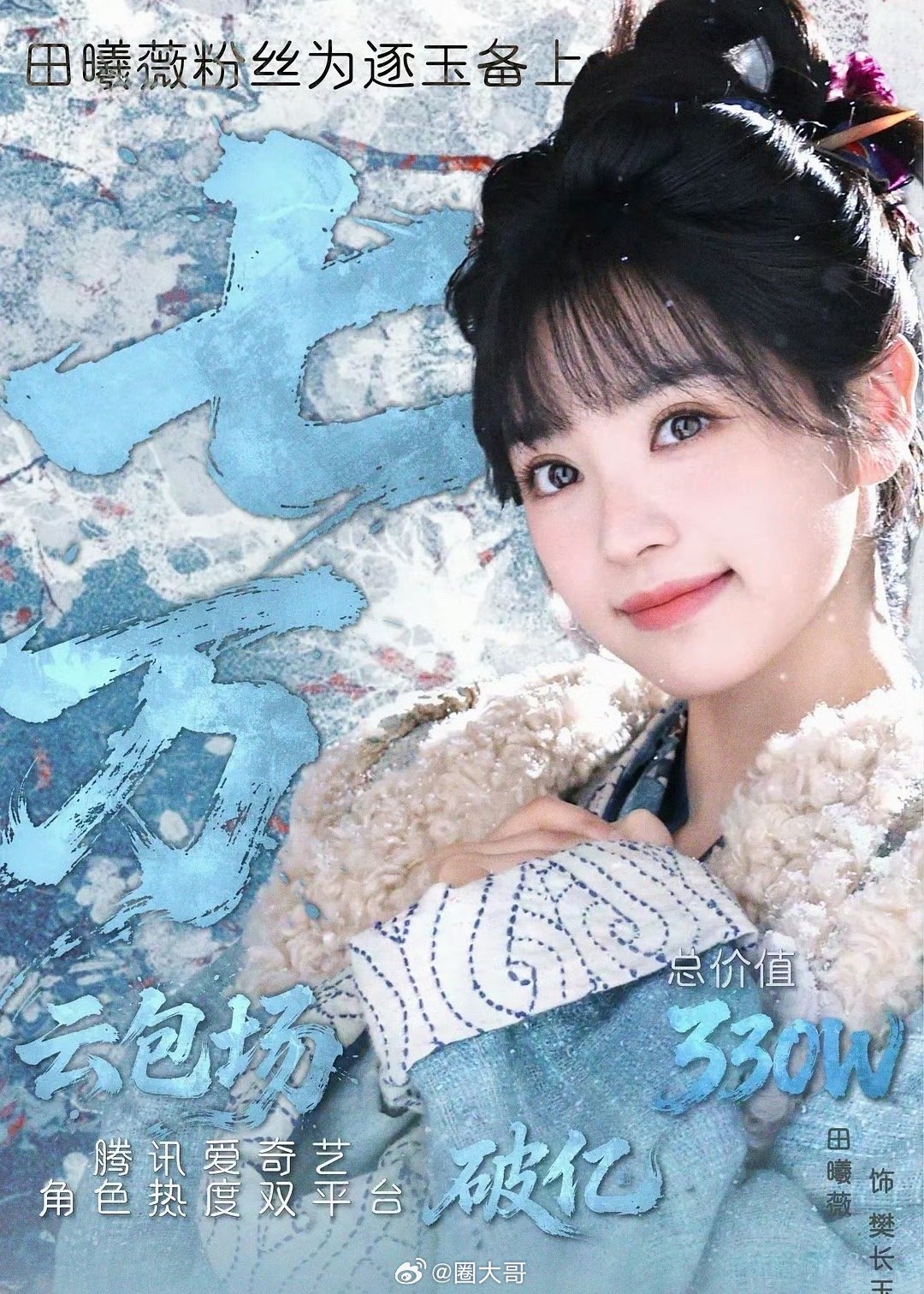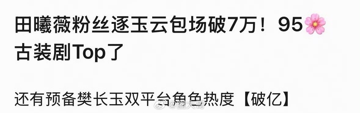 田曦薇角色热度破亿哇哇哇哇,就是说田曦薇在电视剧《逐玉》还没开播,田曦薇在这部剧的人气绝了啊,粉丝为田曦薇包场靠实力出圈,就是说不愧是古装剧95花的TOP啊,期待田曦薇在剧中的表现啦~田曦薇樊长玉双平台角色热度破亿