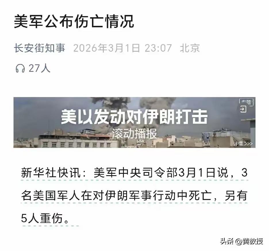 伊朗终于对美国和以色列展开了猛烈报复,发射1200多枚导弹,致使美国三人死亡、五