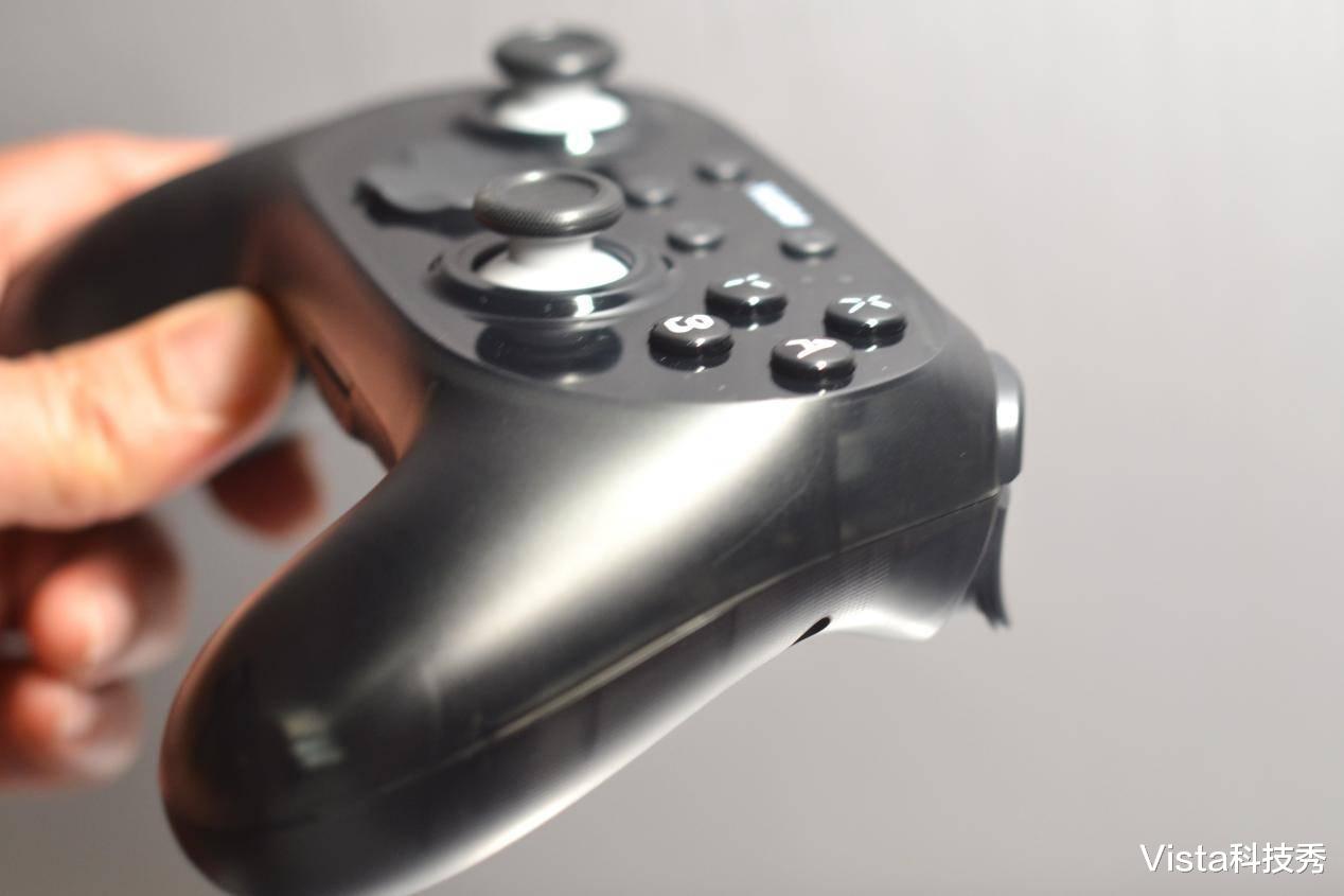 刚接通赛车游戏,手柄传来一阵震动让我惊吓了一下,原来是西圣GC1通过微型电机与多级阻尼系统重构结构,最高可提供约2.5N的真实反馈力,赛车游戏中还原油门与刹车的真实阻力,手柄15°弧度人体工学设计的L/R板机键,每一层次扣动都可以带来沉浸式的油门、刹车触感,游戏带来完美的3D感觉。