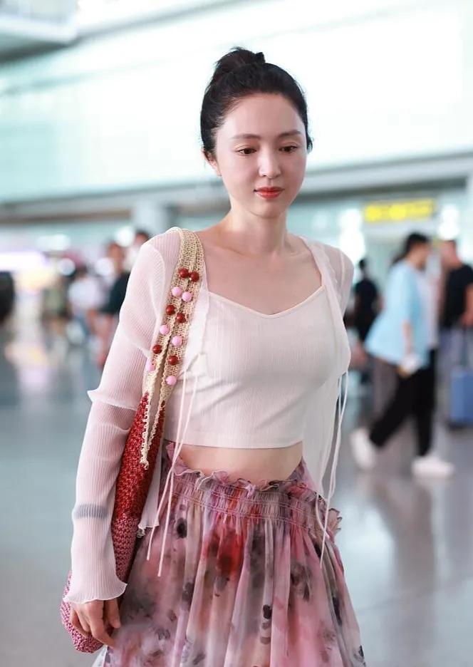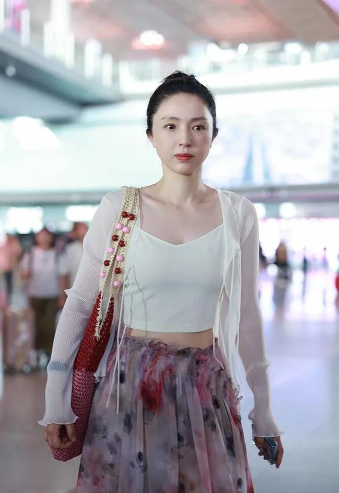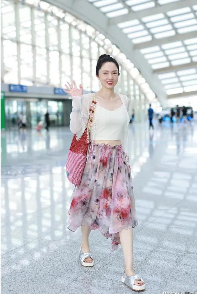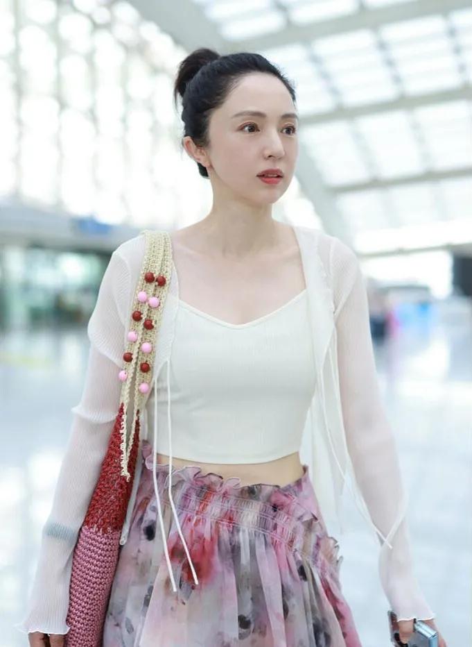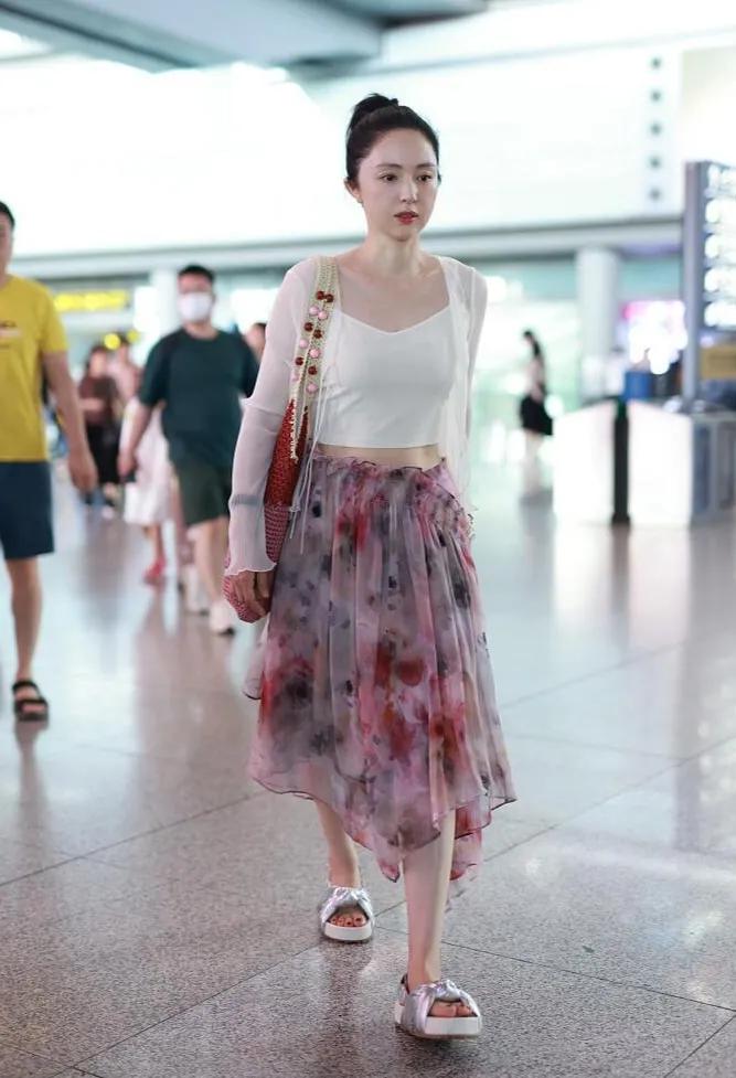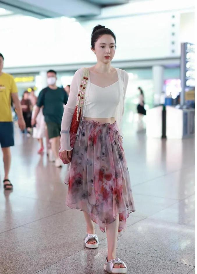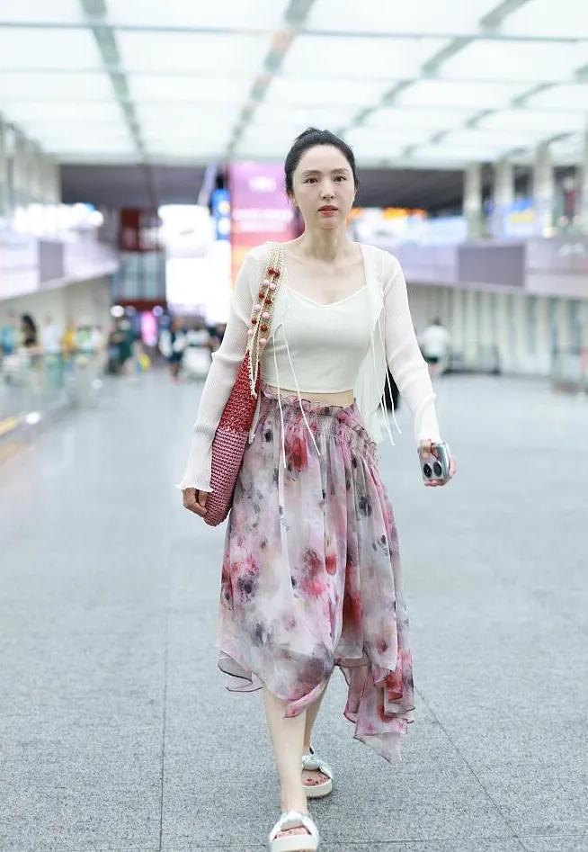 董璇机场私服太会穿了!🌸 董璇这组机场路透真的好戳我!白色针织小背心+薄透开衫,再配上一条晕染感的印花纱裙,甜妹感直接拉满~ - 小背心微微露腰,恰到好处地秀出好身材 - 开衫的彩色纽扣和纱裙的水墨印花,温柔又有设计感 - 银色厚底凉鞋+编织包,休闲又不失精致感 40+的状态也太绝了,皮肤白皙紧致,高马尾显得活力满满,完全看不出岁月痕迹! 董璇 明星穿搭 机场路透