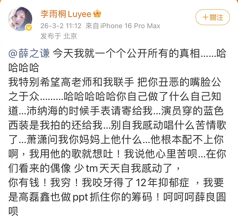 李雨桐又向薛之谦开炮了