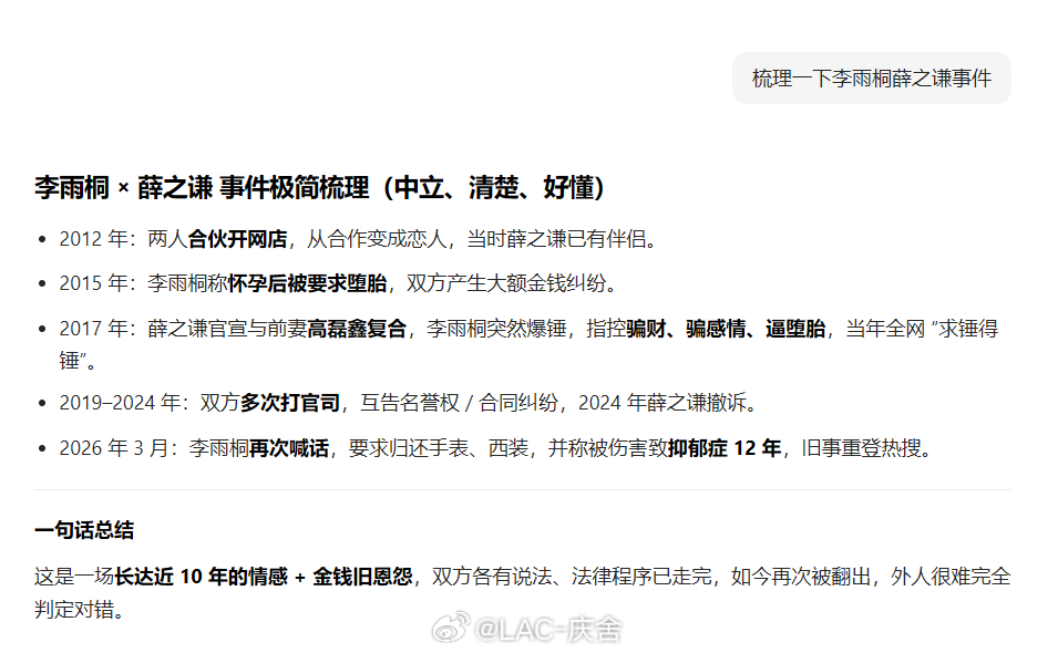 李雨桐喊话薛之谦 旧事又被翻上热搜,还有谁记得当年到底发生了啥? 用AI梳理了一下时间线,大家理性吃瓜