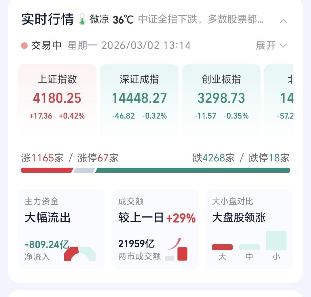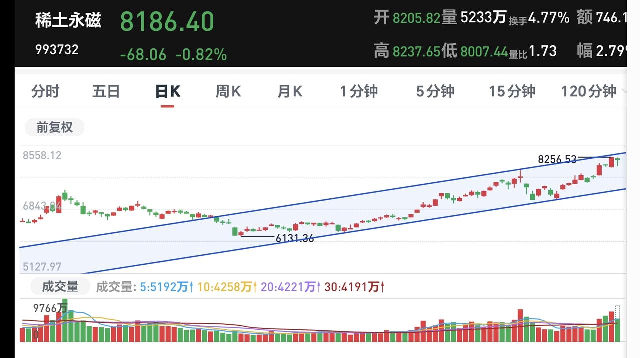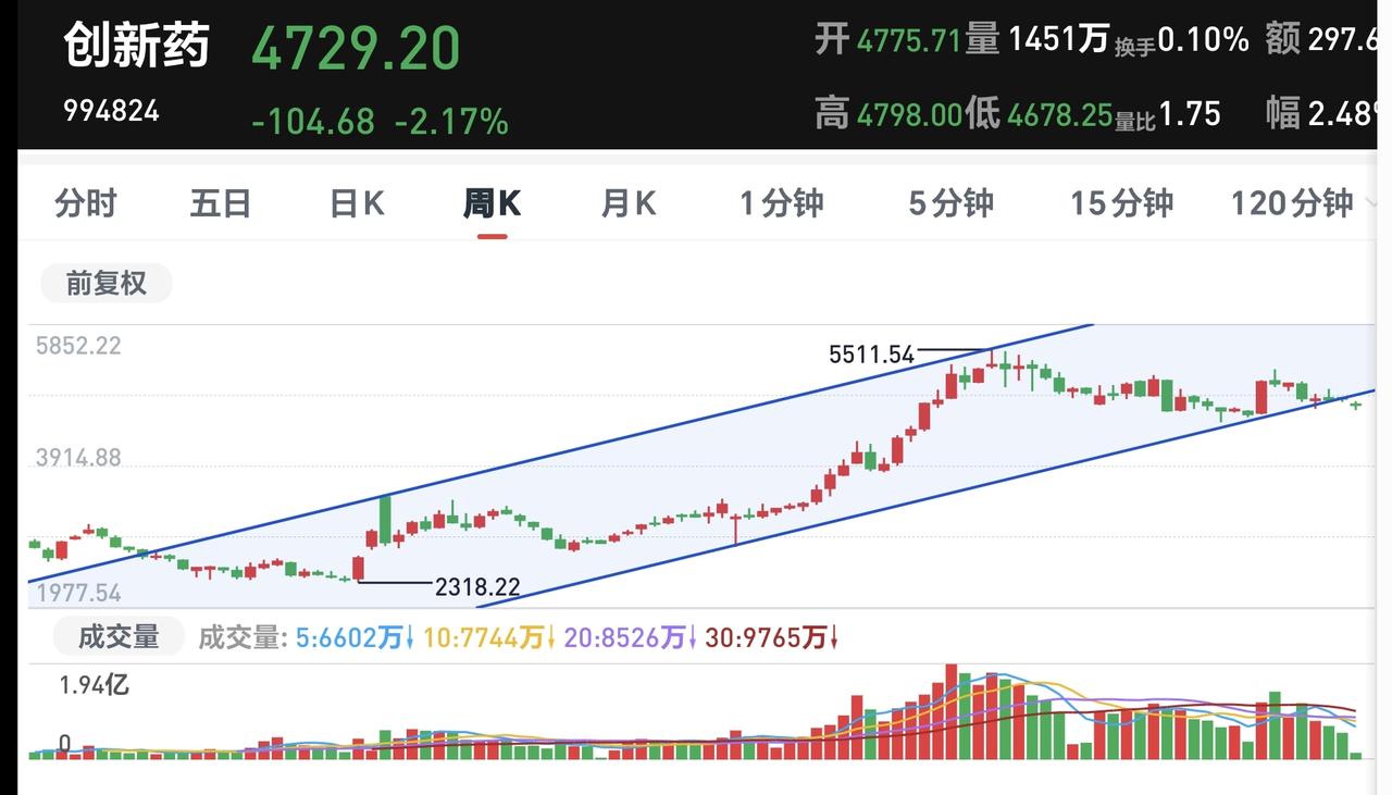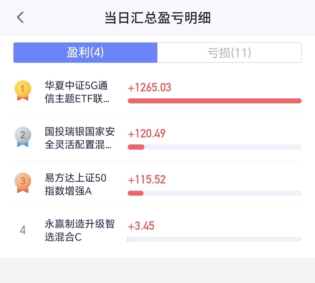 基金:创新药板块和稀土永磁板块 下午开盘以后,指数震荡向上,上证指数已经翻红,创业板指和深成指的下跌幅度也已经缩小,创业板指下跌了0.30%,盘中点位3300点,上证指数上涨了0.42%,盘中点位4180点,距离前高4190点,只有10个点的空间。 整个股票市场,上涨1165家,下跌4268家,涨停67家,跌停18家,上涨家数少于下跌家数。 持有的基金中,盘中估值盈利金额最大的三个板块是:5G板块,军工板块,上证50板块,估值亏损金额最大的三个板块是:创新药板块,芯片半导体板块,证券板块,估值整体亏损了9331元。 整个基金市场,上涨10860家,下跌8752家,上涨幅度超过5%的19家,下跌幅度超过5%的2家。 图10是今天板块的上涨排行榜,上涨幅度最大的三个板块是:黄金板块,油气资源板块,煤炭板块,图11是今天板块的下跌排行榜,下跌幅度最大的三个板块是:金融科技板块,北证板块,传媒游戏板块,图12是今天基金的加仓和减仓人数,加仓11998870人,减仓3826004人,加仓人数超过了减仓人数。 整个市场主力资金净流入最多的三个板块是:通信设备板块,通信板块,5G板块,主力资金净流出最多的三个板块是:国企板块,蓝筹策略板块,人工智能板块。 1:今天下午虽然是震荡向上,但黄色线还是在蓝色线下方,今天如果盘中创4190点新高,如果收盘点位在4190点上方,从明天开始,随时随地准备再一次止盈。 2:现在两市累计成交21959亿,相比于上周五放量了29%,全天的成交量预计在30000亿左右,以这样的成交量再创新高,即使冲上去了,也很难站稳。 3:创新药板块今天大跌,现在盘中下跌跌破了日线级别上涨通道的下轨线,而且形成了一个新的日线级别短期下跌通道,短线想进场的人耐心等待上涨突破日线级别短期下跌通道的上轨线,上涨突破了日线级别短期下跌通道上轨线以后,再考虑要不要进场。 创新药板块周线级别今天也跌破了上涨通道的下轨线,长线的人现在也应该选择观望,长线想进场的人也是要盯住日线级别新的下跌通道,上涨突破日线级别下跌通道上轨线的时候再考虑要不要进场。 4:稀土永磁板块今天也是下跌,上周五上涨到达了日线级别上涨通道的上轨线附近,我当时说,凡是上涨通道上轨线附近进场都需要谨慎,前几次上涨到上轨线附近也都是回落的,今天也是回落的走势,但今天的下跌并没有改变这个板块日线级别的上涨趋势,短线持有的人可以继续持有。 稀土永磁板块周线级别也是处于上涨通道中,距离上涨通道的下轨线比较远,小幅度的下跌都改变不了这个板块周线级别的上涨趋势,长线持有的人可以继续持有,除非下跌跌破这个周线级别上涨通道的下轨线,才可以考虑要不要止盈出来观望。 在外围局势不确定的情况之下,市场越是往上涨越是要谨慎,而且今天是生拉硬拽上去的上涨,现在上证指数虽然是红盘,但我持有的基金却是大幅度亏损,现在的持有亏损金额在10000块钱左右,这就是表面风光,我们不需要这样的上涨,这样的上涨也不会持久,今天究竟应该怎么办?我会在评论区留言。 花1秒钟点赞,花30秒钟评论,就是对我最大的支持,谢谢大家的支持。