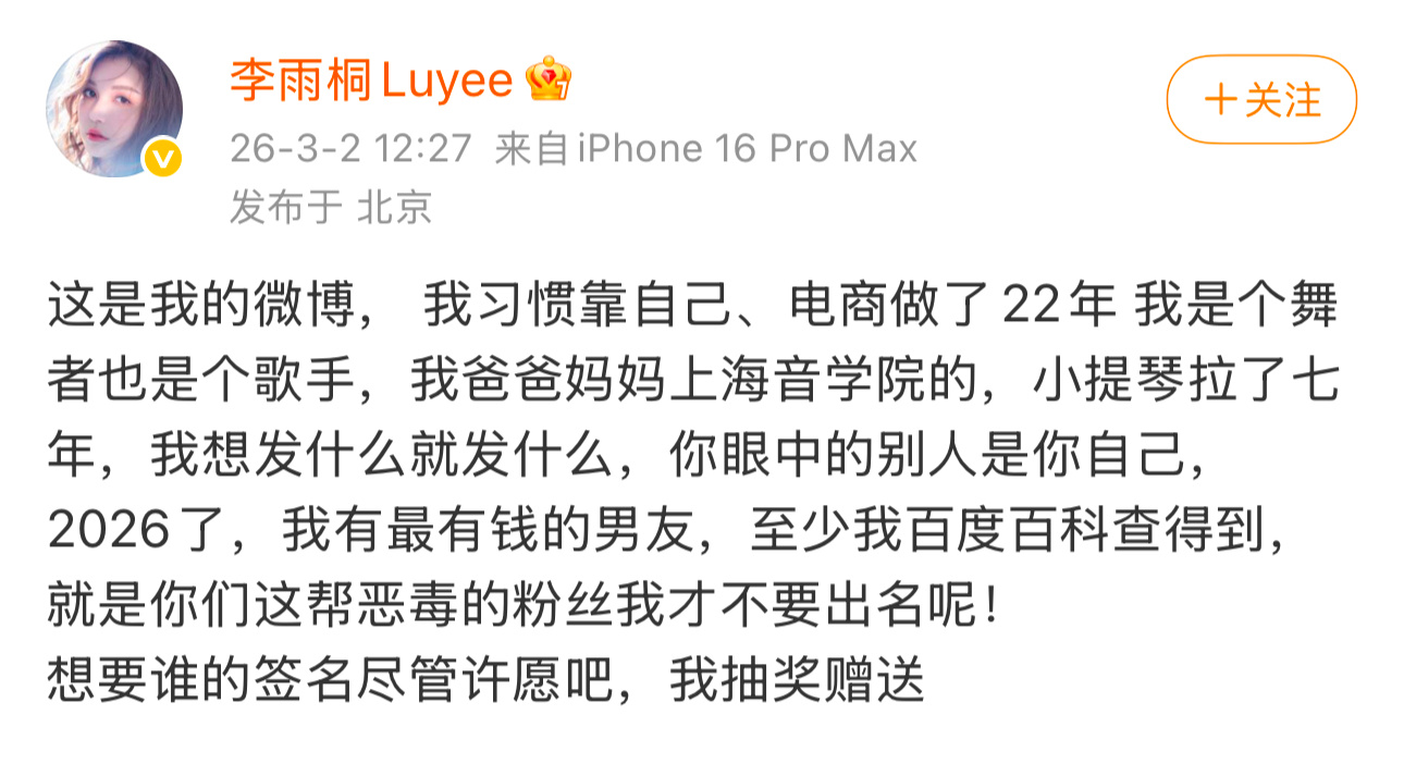 李雨桐:我有最有钱的男友我们家师洋每年被造谣去世我们一家三口也非常幸福没看出来你