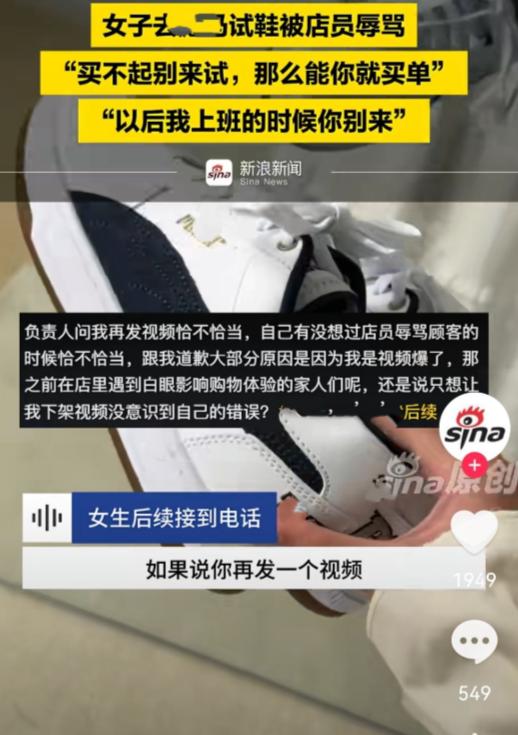 山东滨州,一名20岁女生到商场某品牌店试鞋,因穿搭与运动鞋不搭便走了,第二天她又去那个店,试完后说再逛逛。谁知,店员指着她骂:滚出去!买不起就别来试!你那能你就买单?双方随即发生冲突,事后,女生倍感委屈,将此事发到了网上,很快引起网友关注。而后店里负责人联系她道歉,可没想到,女生公布与负责人通话后,事件再次升级! 就在2月24日,山东滨州发生了一件让人听了直冒火的事,一位才20岁的小姑娘,去当地万达广场一家卖运动鞋的店里逛街。 事情还得从头一天说起,这姑娘第一天去店里试了几双鞋,对着镜子照了照,感觉跟自己当天的穿搭不太配,试完也就没买,转身走了。 到了第二天,她寻思着再看看,又回到了这家店,接着试了几双,试完之后觉得还想再斟酌斟酌,就客客气气跟店员说想再转转、考虑一下再做决定。 谁承想,就这么一句再正常不过的话,那个店员突然就像点了炮仗一样,当场情绪失控炸了锅。 指着这姑娘的鼻子就破口大骂,嗓门扯得震天响,嘴里全是难听话:“滚出去!买不起你就别来试!你那么能耐你怎么不买单啊!”这一下把周围人都惊动了,双方立马起了争执冲突。 这姑娘当着大庭广众的面被这么羞辱,心里头是又委屈又生气,强忍着泪水掏出手机把现场这撒泼的一幕给录了下来。 回家以后,姑娘越琢磨越觉得憋屈,自己就是正正常常进店买东西,既没把鞋弄坏,也没胡搅蛮缠,凭什么试了不买就要挨这种骂?她一气之下就把视频发到了网上。 这一发可不得了,事情迅速在网络上发酵,大批网友跑来围观,大家的态度那是一边倒,全都站在姑娘这边,纷纷指责那个店员不仅服务态度恶劣到了极点,更是狗眼看人低,赤裸裸地歧视消费者。 眼看舆论压不住了,商场那边和品牌方这才慌了神,先后联系姑娘道歉,先是商场的工作人员打来电话,又是赔礼又是道歉,承诺会对这家门店进行处罚,还在内部通报批评,最后还提出来送两张电影票当做补偿,想把这事平了。 紧接着,品牌那边的一个区域男经理也联系了姑娘,态度听着还算诚恳,道了歉,也表态说会严肃处理那个骂人的店员,还邀请姑娘再去趟店里,让那个店员当面给她鞠躬道歉。 但这姑娘心里这口气还没顺,她提了个要求,希望品牌方能公开道个歉,毕竟是在公共场合被骂的。 结果呢,那个负责人不但不配合,还反反复复地催这姑娘,话里话外暗示她赶紧把网上的视频给删了。 更让人气愤的是,后面又换了个女负责人打电话过来,这女的全程压根不提怎么整改、怎么道歉的事,一上来就那是盛气凌人,要求删视频。 那语气傲慢得不行,还带着冷笑反问姑娘:“妹妹,你今年多大了?再发这种视频对双方都没好处,你自己觉得合适吗?” 甚至还质问说:“必须得公开道歉吗?”这哪是解决问题啊,分明就是变相威胁、施压。 姑娘本来也没想把事情做绝,就要句真诚的道歉,结果一看负责人这副嘴脸,那是彻底寒了心。 二话不说,直接把跟那个女负责人的通话录音完整地发到了网上,这段录音一曝光,事件立马再次升级。网友们这回是真怒了,觉得这商家根本不是想解决问题,纯粹就是想“捂嘴”、压热度,这种傲慢的态度比那个店员骂人更让人恶心、反感。 后来还有知情的网友爆料说,这家门店以前就被不少顾客吐槽过,说店员态度差、看不起人,这种事根本就不是头一回发生。 虽然事后那个涉事的店员被停职了,暂时不能上岗,但品牌方到现在也没发个正式的公开道歉声明,也没给个明确的处罚和整改说明,网友们对此普遍不买账,觉得这就是在敷衍了事,一点诚意都没有。 说到底,作为消费者,进店试穿那是咱们的合法权利,试完了不买那是太正常不过的事了,店员根本没权利辱骂、歧视顾客。 商家出了事不先反思自己的服务问题,光想着怎么删视频、怎么压舆论,这种处理方式,那是彻底把品牌的口碑给败光了,也让更多的消费者感到失望透顶。 对此你怎么看? 信源:河南都市频道