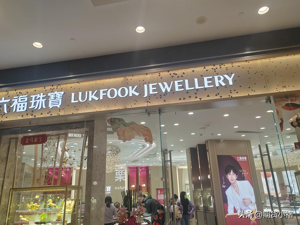 虽然黄金处于高位, 但是品牌黄金店铺里面 还是有些顾客的, 没有出现销售人员 闲来无事的情况。 图中为某购物中心的, 六福珠宝,已经看到二波顾客。