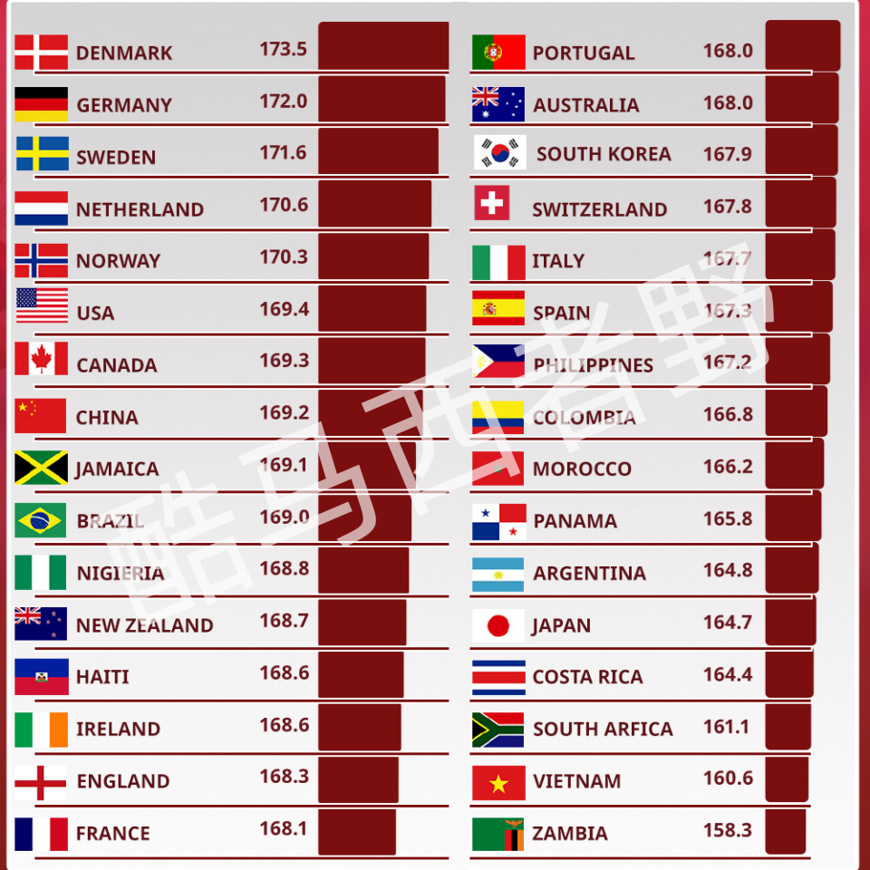 左图是本届女足亚洲杯十二支参赛队的平均身高排行榜,右图是2023年女足世界杯各队的平均身高,显然我们的身高不仅在亚洲范围内,而且在世界范围内都是有优势的,但是足球毕竟不是一项比谁高的运动。 我分享一下几支亚洲强队门将的身高数据。 日本女足: 山下杏也加,身高1米7 平尾知佳,身高1米72 大熊茜,身高1米73 澳大利亚女足: 麦肯锡·阿诺德 身高1米81 摩根·阿基诺 身高1米73 克洛伊·林肯 身高1米78 朝鲜女足: 朴朱梅 身高1米75 俞鲜金 身高1米72 中国女足: 陈晨 身高1米87 彭诗梦 身高1米82 朱钰 身高1米84 韩国女足: 金珉贞 身高1米75 禹瑞彬 身高1米73 柳智秀 身高1米74 相比之下,我们门将的身高在全亚洲无人可比,像大多数球队这种身高的门将在我们女超女甲联赛比比皆是,可从门将的综合能力来排,我们还会是第一吗?只有1米7的日本门将山下杏也加却可以成为英女超曼城队的主力门将,是我们的选材方向错了还是我们联赛门将的训练根本达不到要求呢?