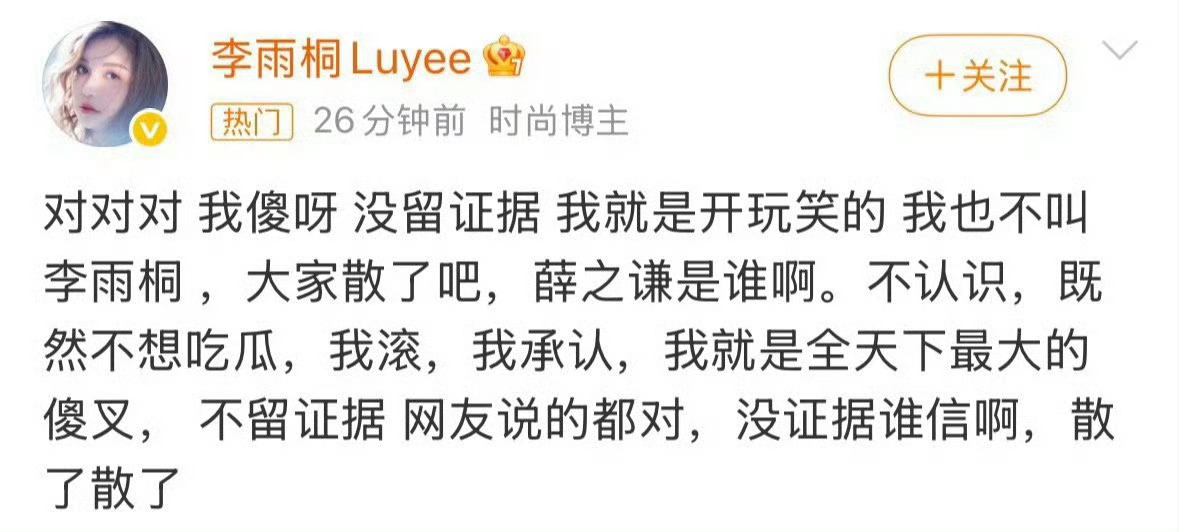 李雨桐曾说自己是薛之谦粉丝李雨桐曾帮薛之谦打歌内娱又一出抓马大戏来了 李雨桐 大家散了吧