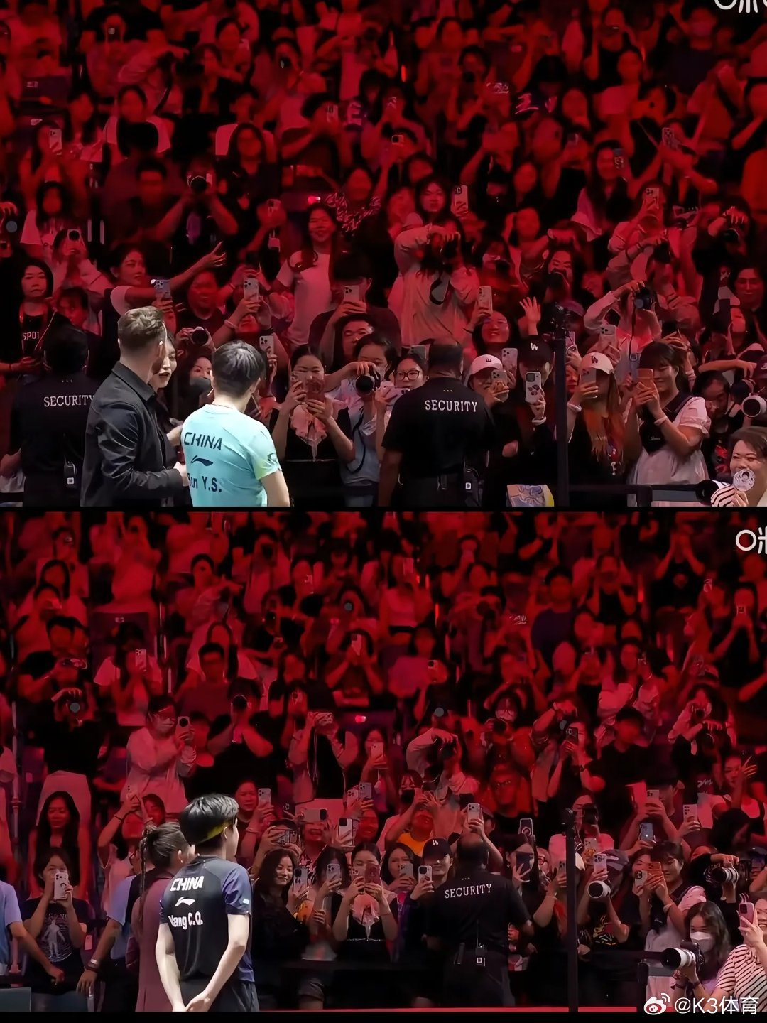 孙颖莎和刘国梁在新加坡见面,旁边的大高个,从莎莎转身就一直跟着她,当莎莎停下和国