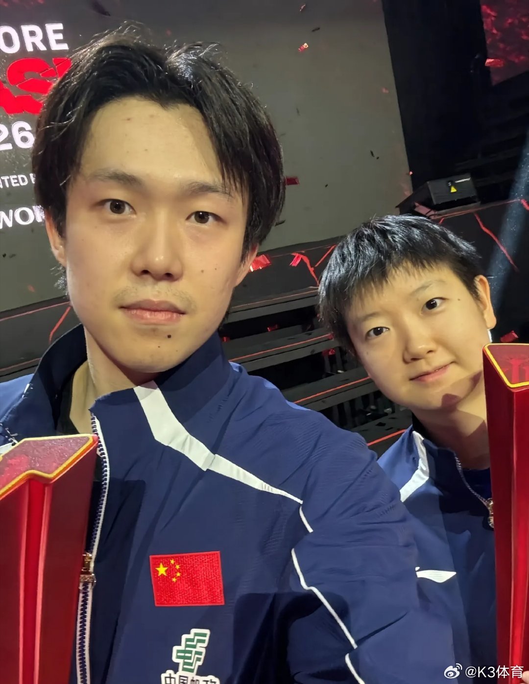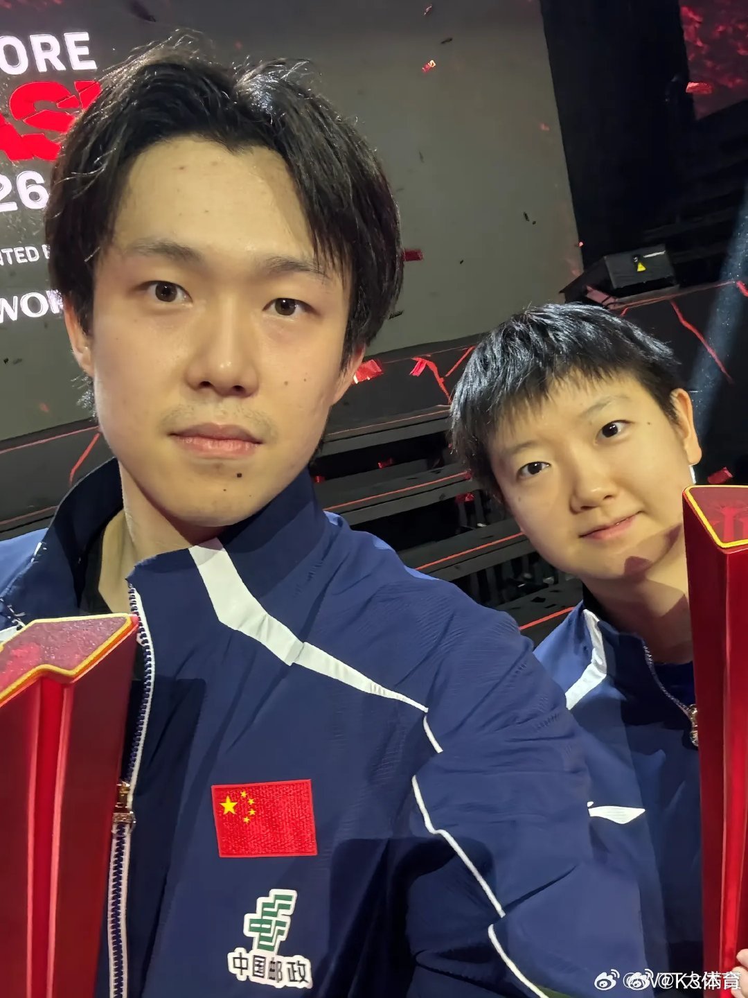 新加坡大满贯,孙颖莎和王楚钦一起冠军宣传照3大亮点呈现,背景和灯光2项助攻下,