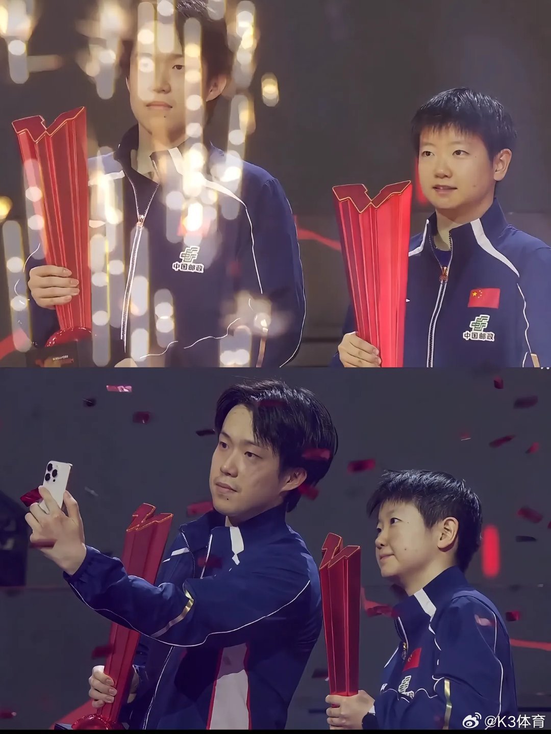笑不活了!王楚钦孙颖莎刚拿下冠军,合影时的互怼日常真的太圈粉。两人为谁举手机推