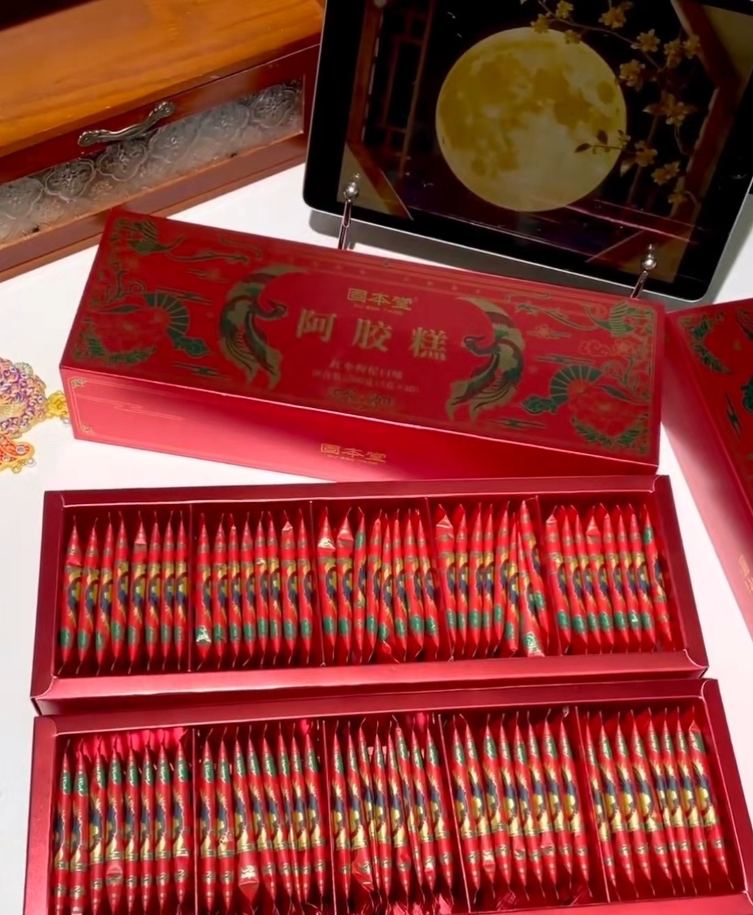 我决定试试传统的阿胶。选固本堂,是因为看中它两点:一是100%真驴皮,原料扎实,拒绝杂皮混充;二是搭配了核桃仁、黑芝麻和黄酒一起熬,非遗工艺,感觉是老方子该有的样子。